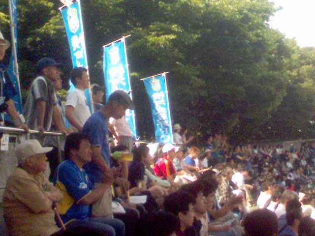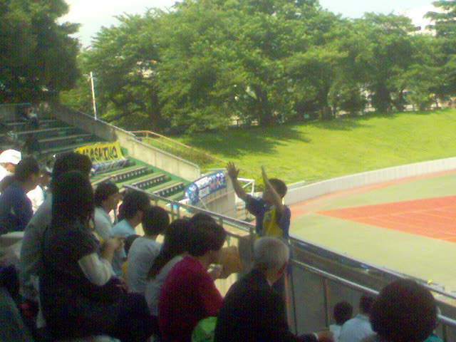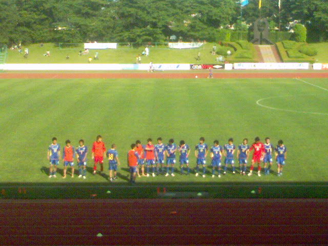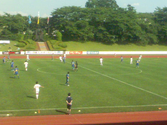 2007年06月02日 横河武蔵野 1−0 Honda ブログネタ:【JFL】 に参加中! 会社の研修は午前で終了。夜はフェンシングの練習に行く(つもり)なので、午後どうしようか。流石に早慶戦は人大杉でパス。で、行けそうなところを考えた結果、四年ぶりに武蔵野へ。茅場町から三鷹は東西線一本。 〇第九回日本フットボールリーグ第14節初日 横河武蔵野FCvsHondaFC 2007年6月2日(土)14時 武蔵野陸上競技場 晴 主審:木村博之 副審:地主尚和、鶴岡将樹 四審:加藤寛之 795人 横河武蔵野 1−0(0−0) Honda 【得点】横:72オウンゴール(桶田) 【横河武蔵野】GK21大石和夫 DF4西口広海、2小山大樹、7太田康介、22石川清司 MF19野木健司、24原島喬(→59分MF10本多剛)、17中島健太、8池上寿久 FW9村山浩史(Cap.)、18大多和卓(→83分MF6ユン星二)SUB;GK26金子芳裕、DF5立花由貴、32瀬田達弘、MF23浅川智、FW15長沼圭一 監督:依田博樹 【Honda】GK12中村元 DF13堀切良輔(→74分DF20河住一仁)、4安部裕之、3石井雅之(Cap.)、14桶田龍 MF5川島啓吾、19柴田潤一郎、16土屋貴啓、7増田勝文 FW24鵜飼宏長(→50分FW9新田純也)、11鈴木弘大 SUB:GK21清水谷侑樹、MF8西望実、10関雅至、15吉村和紘、FW23川島大樹 監督:石橋眞和 というか、四年前に武蔵野来たときも、確かこのカードだったような気がする。このときは武蔵野0−5Honda。 横河サポ。なんか、最近真面目に応援する割合が増えた気がする。一方の本田サポ。なんか、音程が。。。 試合は、守備戦というか、貧打戦というか。 ま、風は強いけど、絶好のサッカー日和だったよ。 続きを読む タグ :#横河武蔵野FC#横河電オ#)榲諜燦??ネ#サッカー#JFL