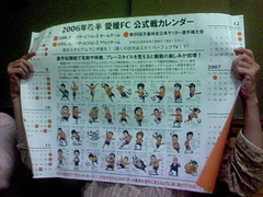 *写真は、10/14川崎F−甲府の試合終了後、「鳥義」にて撮影。8月の国立での東京V−愛媛戦で配布された、愛媛FCのカレンダー。