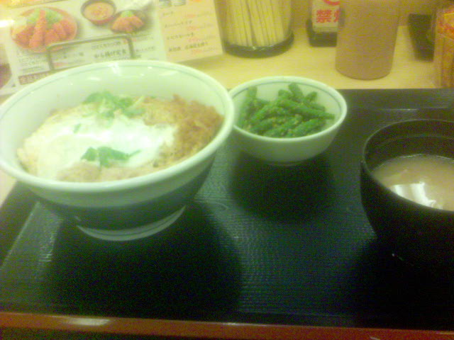 写真は、昼食のかつやのかつ丼、梅480円(税、とん汁別)。