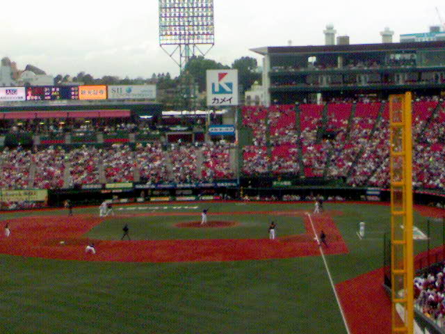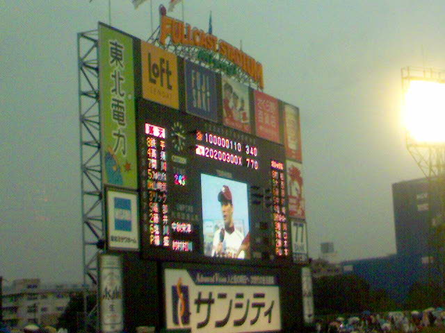 昨日で9連敗と、何やらきな臭い匂いがするので、思わず宮城球場へやってきた。雨の予報もあったが、なんとか持つ。但し、8回裏頃から雨が降り出し、試合終了時には本降りに。