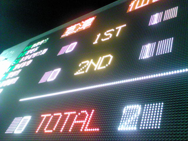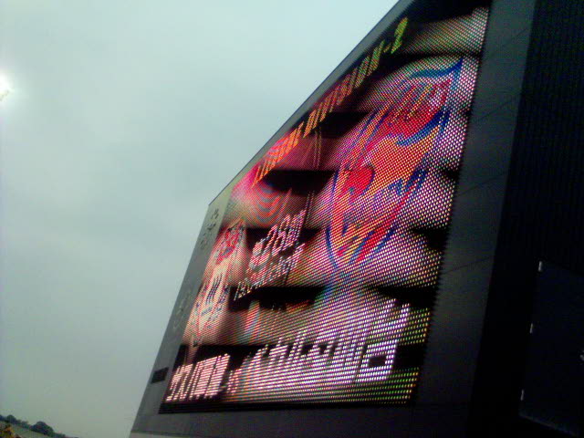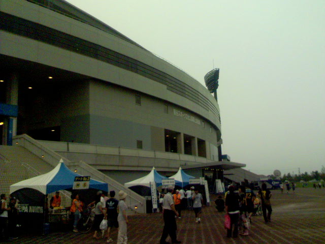 熊谷よいとこ、一度はおいで?(そりゃ草津だろ)てなわけで、東京駅丸ビル横を14時に出発したバスツアー。到着は16時過ぎ。開場1730まで時間があるので、バスの中で読売戦のビデオ見て時間潰してました。