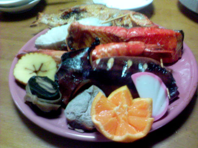 写真1枚目:実家の床の間。写真2枚目:実家のおせち。