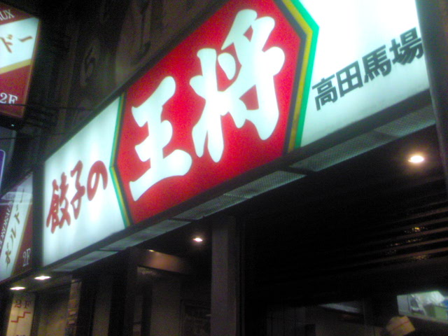 で、行ったのが。。。よりにもよって王将かよ!ま、ごちになったからいいけどさー。三人で、餃子六人前、レバニラ、焼きそば、麻婆豆腐、蟹玉、ビール。トータル9K円。