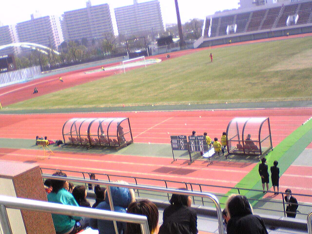 ちなみに、江戸川陸上のスコアボードは工事中で、得点板は仮設、タイマーは(かつてビートたけしのスポーツ大賞でカール君も使ったらしい)陸上競技用。