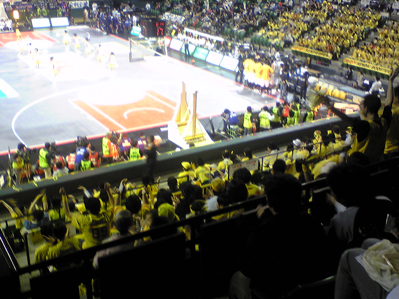(写真:3Q途中。マイクを使って客を煽る、山蔭ヒーロ:仙台の場内MC。昔は柏レイソルのMCだった)というわけで、bjリーグのプレーオフも今日が最終日。今日は思い切って、有明コロシアムまでバイクでやってきた。