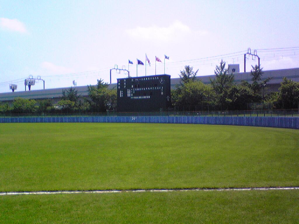 センター120、両翼92。観客席約2千。外野芝生からはただ見可能。