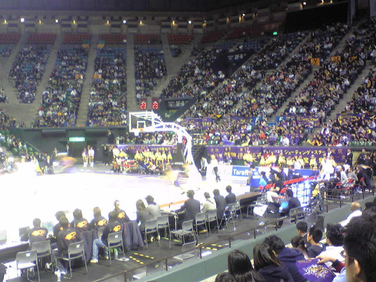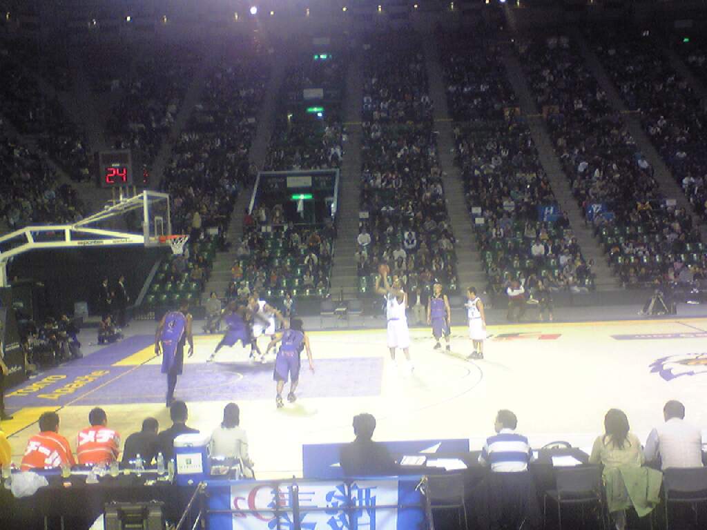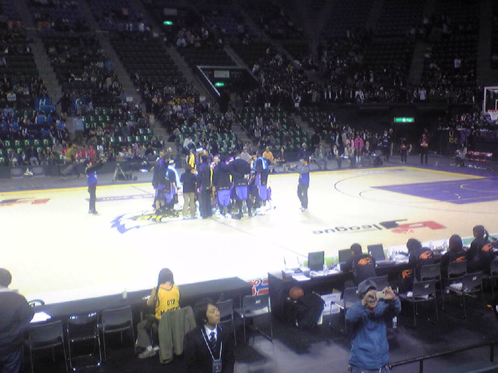 場外で、去年のファイナルのDVDの宣伝を兼ねて流していたけど、そのときのベンチ裏の黄色の埋まり具合と比べると雲泥の差。まぁ、正直、レギュラーシーズンは、ぬけぬけ(1勝1敗)を繰り返して、いくつか貯金を作って、確実にプレーオフのトーナメントに残れればいいよ、という感じ。