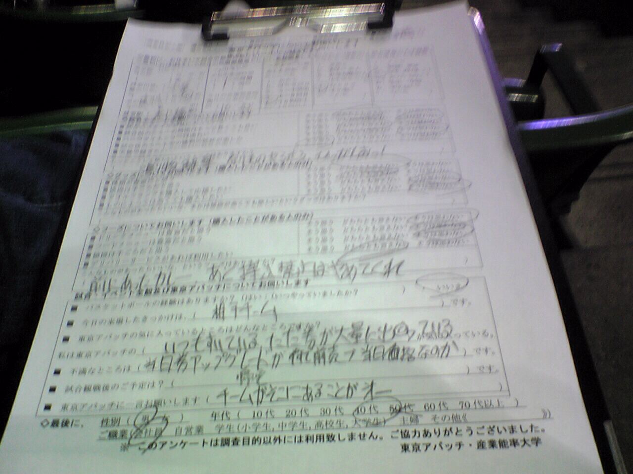 2枚目は東京アパッチのアンケート。とりあえづ「東尾(社長)ちゃんと来い」とは書いておいたけど。あと、「鳴り物やらせろ、ひっがしお!」と書いたし。