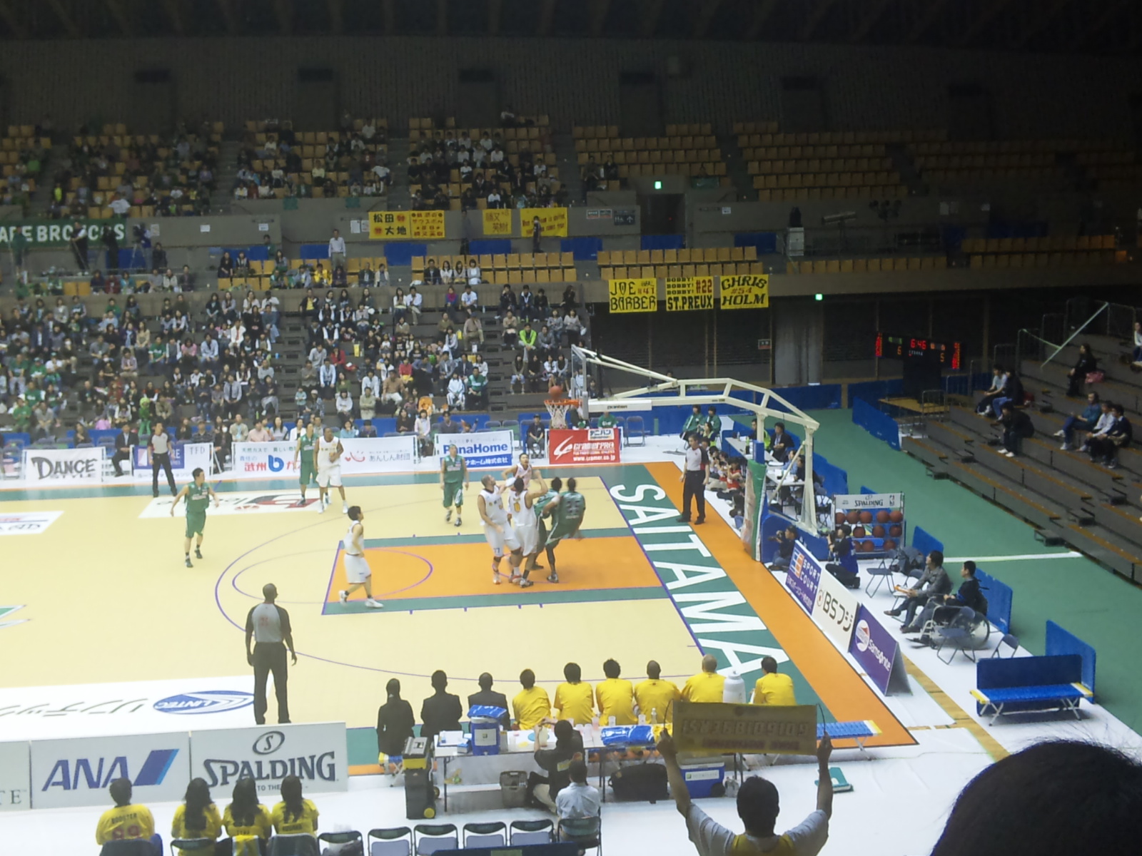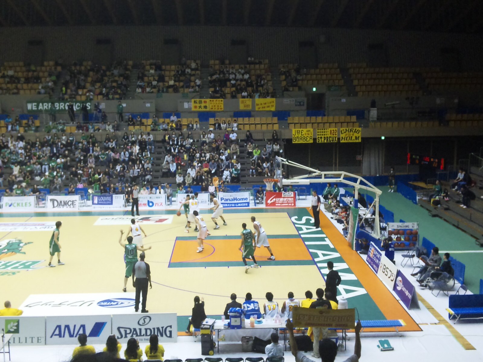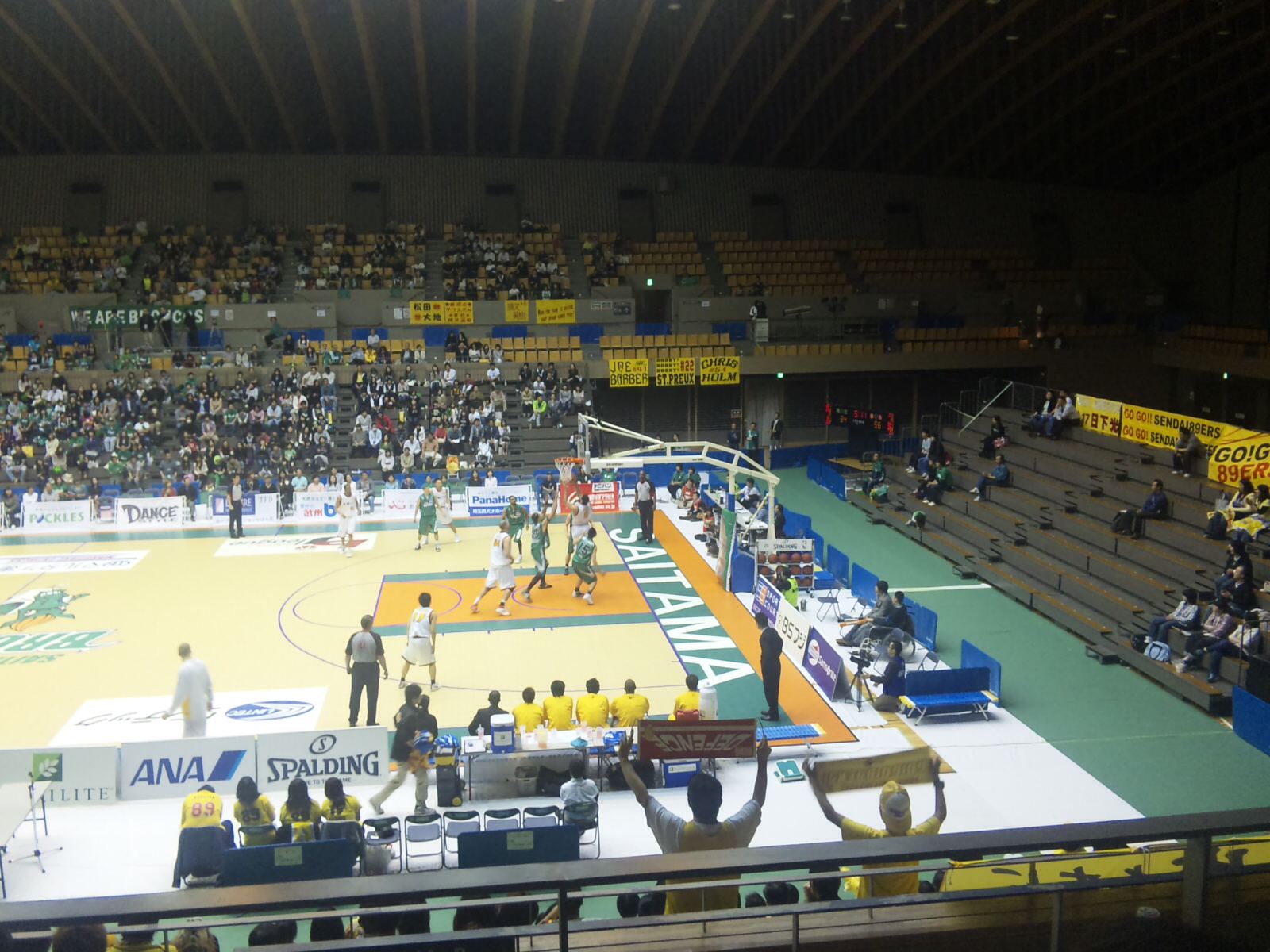○第4回bjリーグイースタンカンファレンス公式戦 埼玉ブロンコス(緑)vs仙台89ers(白) 8回戦 2009年4月12日(日)14時 所沢市民体育館 主審:ポール・ティボドー 2,082人