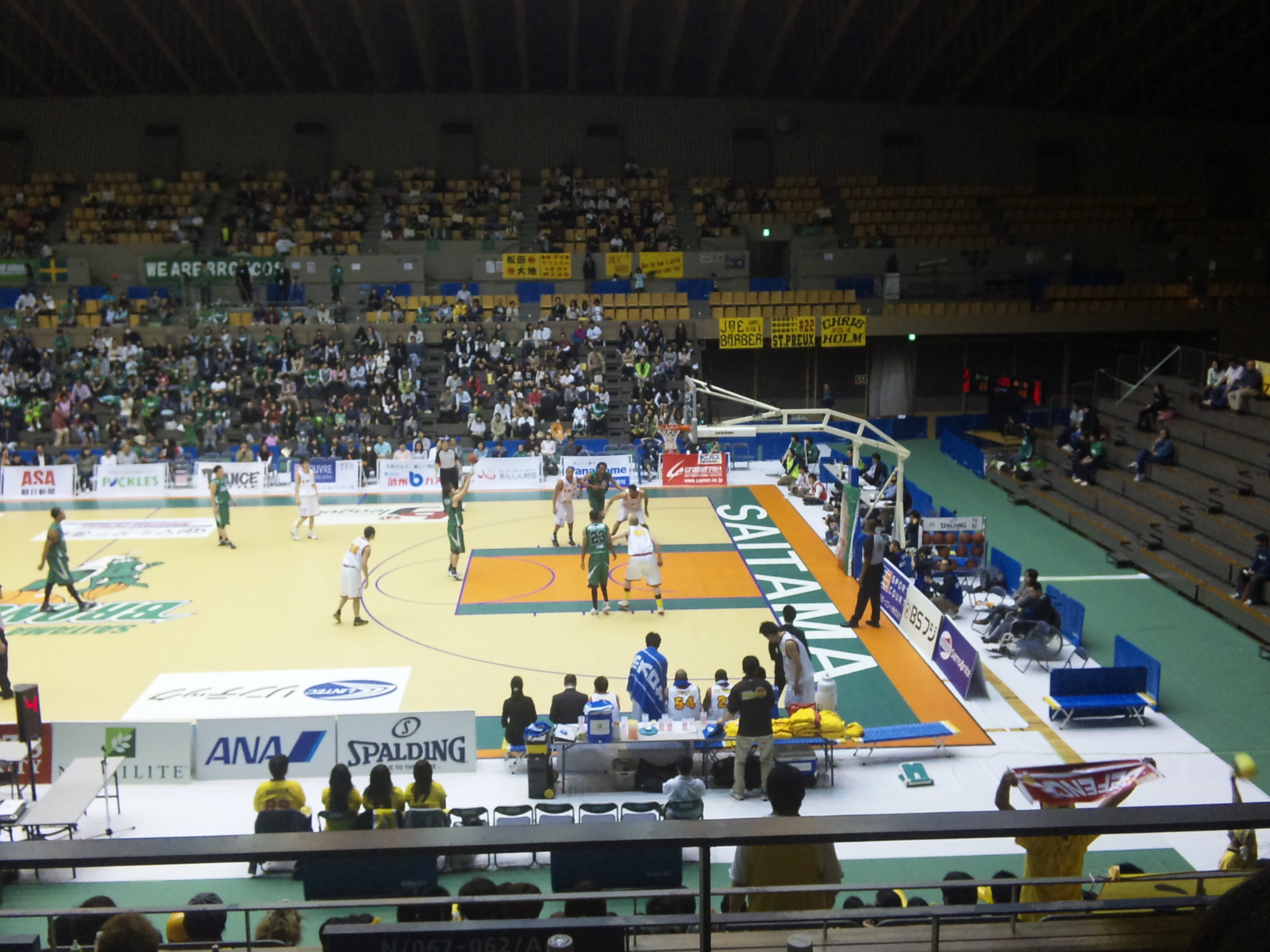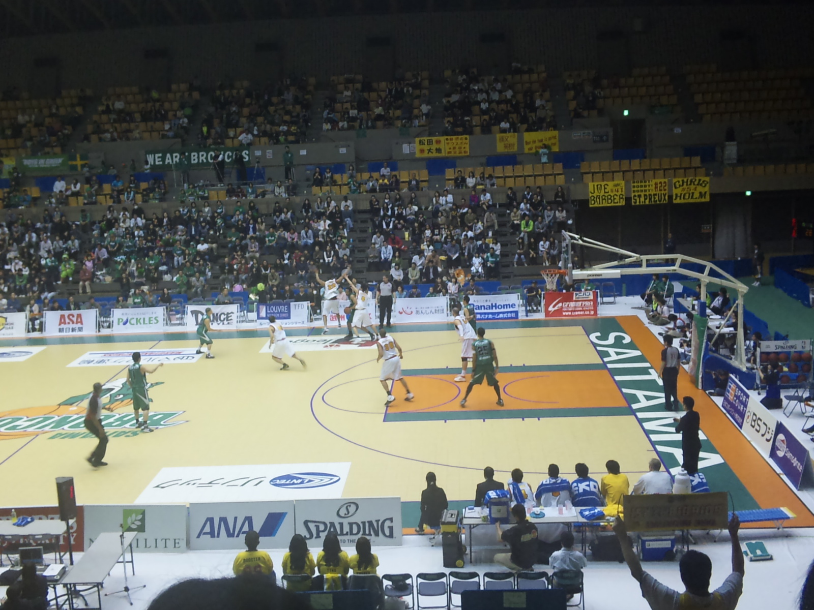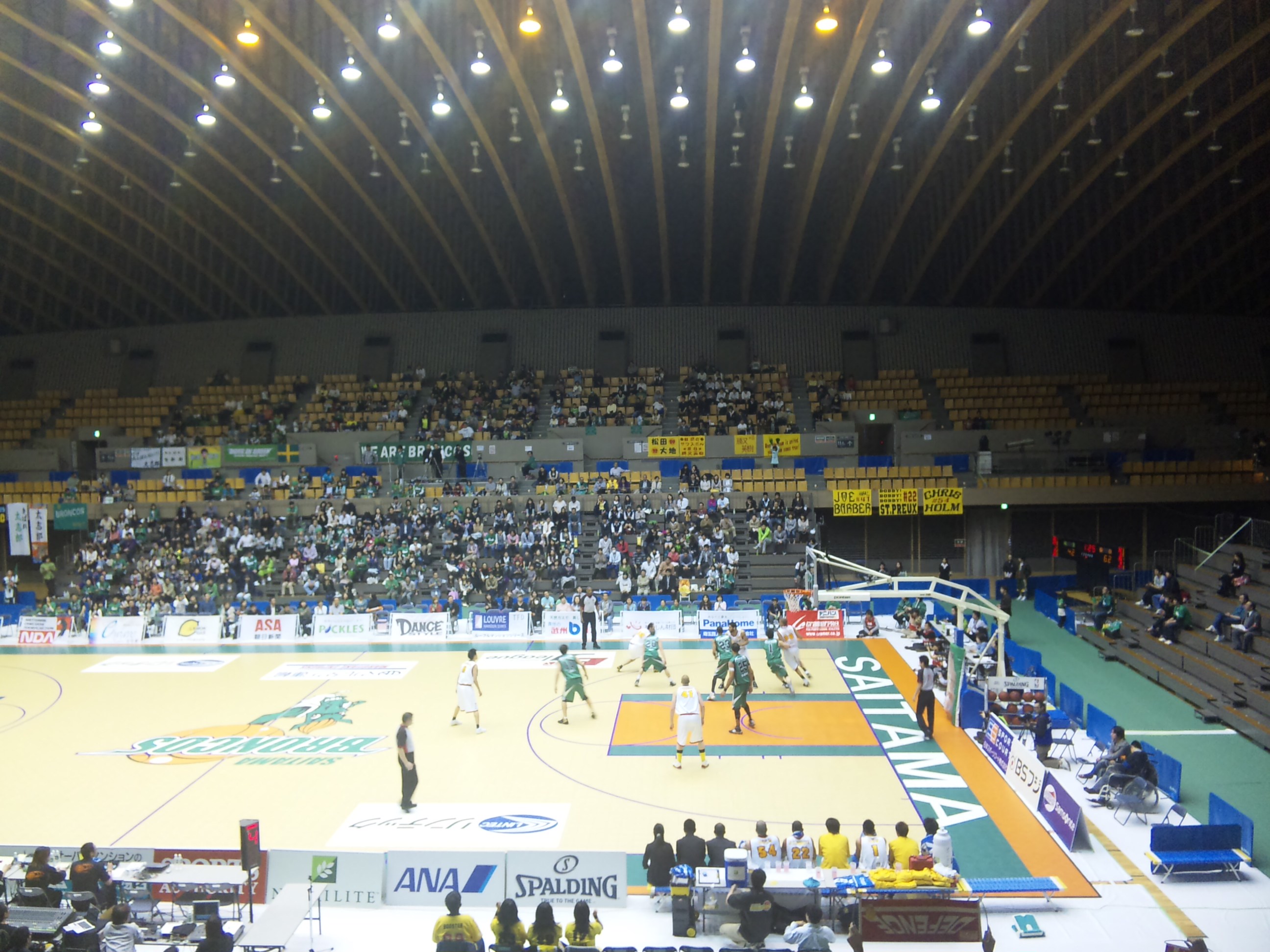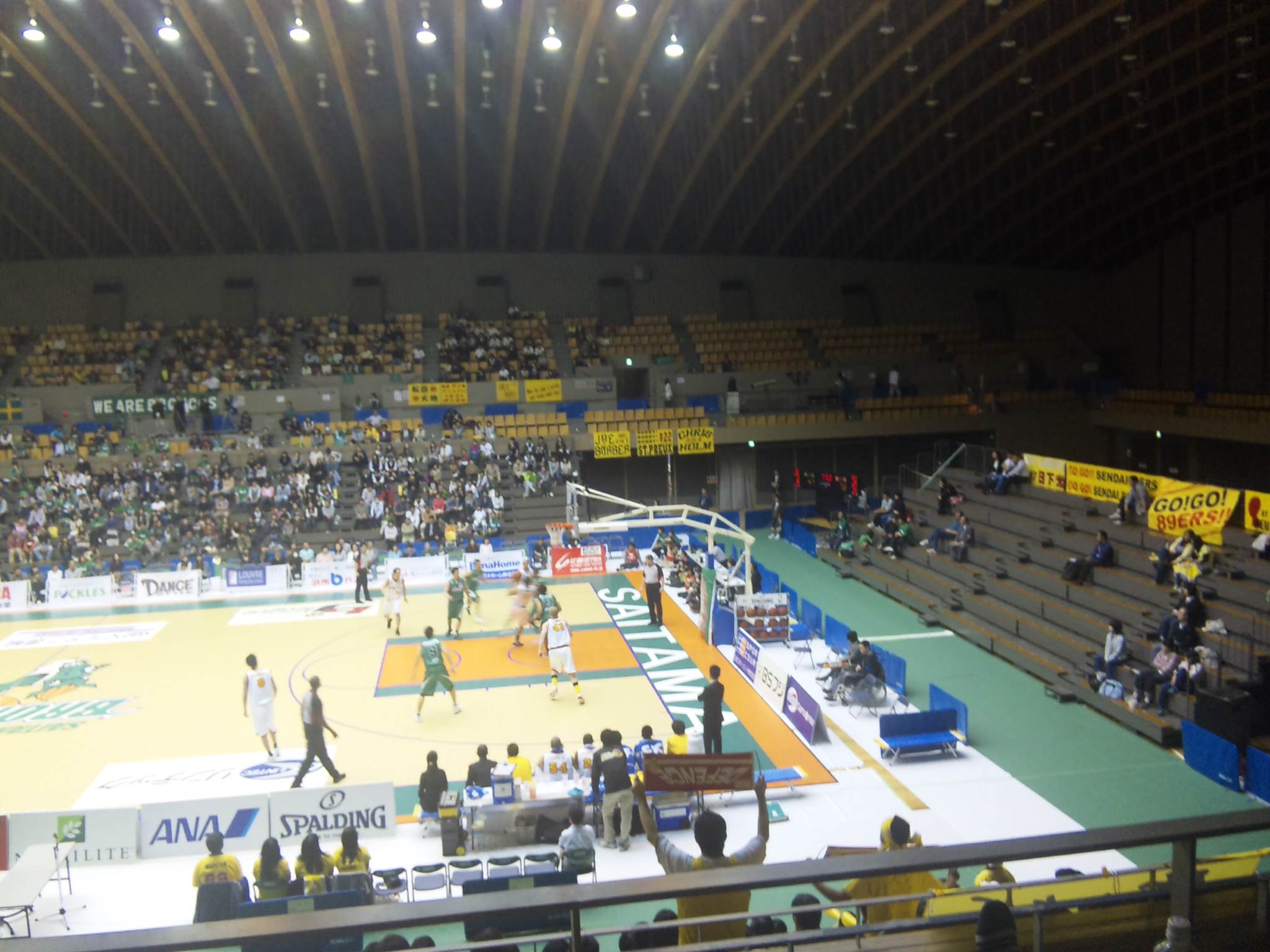 ○第4回bjリーグイースタンカンファレンス公式戦 埼玉ブロンコス(緑)vs仙台89ers(白) 8回戦 2009年4月12日(日)14時 所沢市民体育館 主審:ポール・ティボドー 2,082人