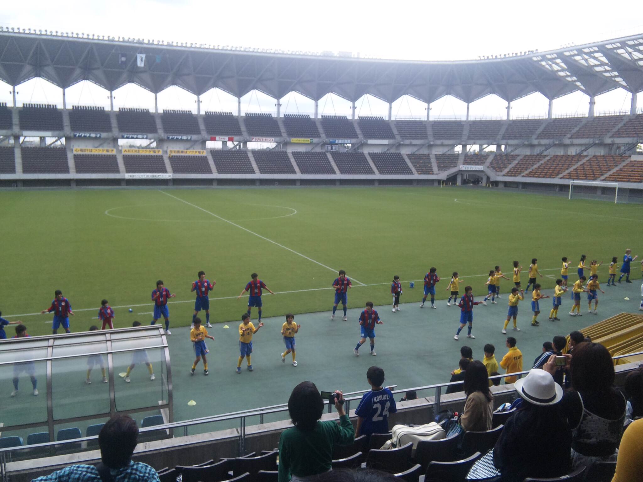 順天堂大学で子供招待とかしてたのか?選手とエスコートキッズというのはよくあるが、主審と一緒というのははじめて見た。