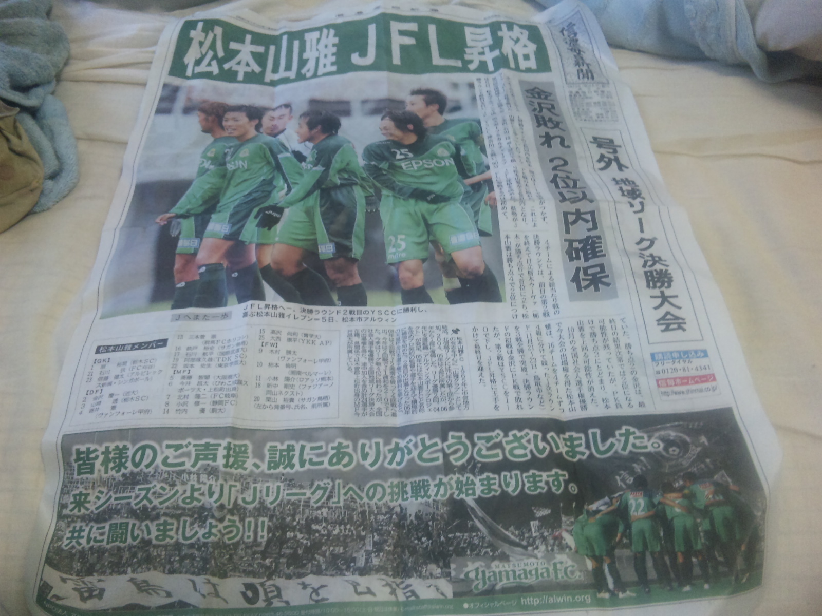 って、余韻に浸る間もなく、第二試合が開始され、信濃毎日新聞は、『松本山雅昇格決定』で号外を出すし。
