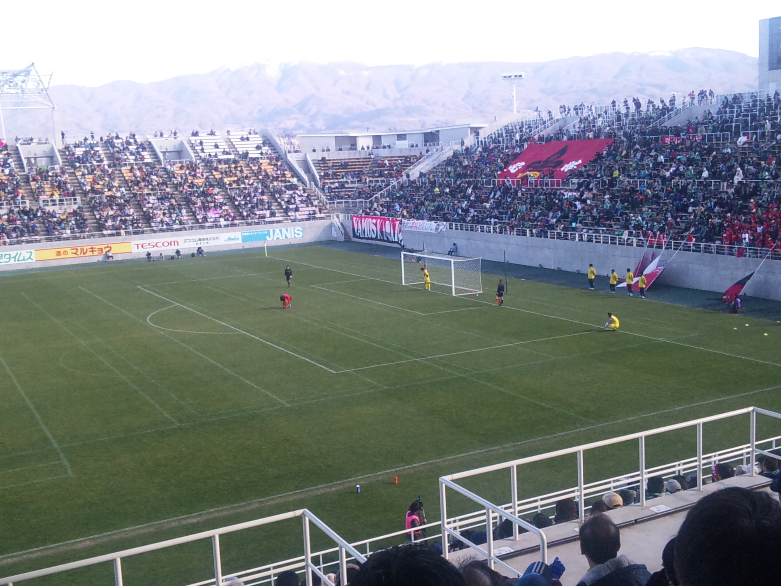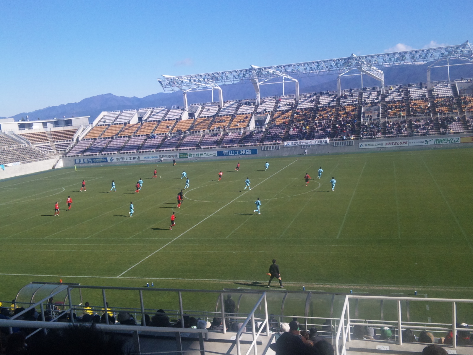 会場のアルウィンは、俺はサッカー179会場目。前々から行きたいスタジアムの一つで、球技専用でいいスタジアムだが(しかもグルメがえらい充実)、如何せん公共交通の便が一時間に一本だかのバスのみ。最寄の村井駅から約4キロ。土日きっぷで来たので、レンタカー2千円で借りて松本駅から約10キロを運転してきた。
