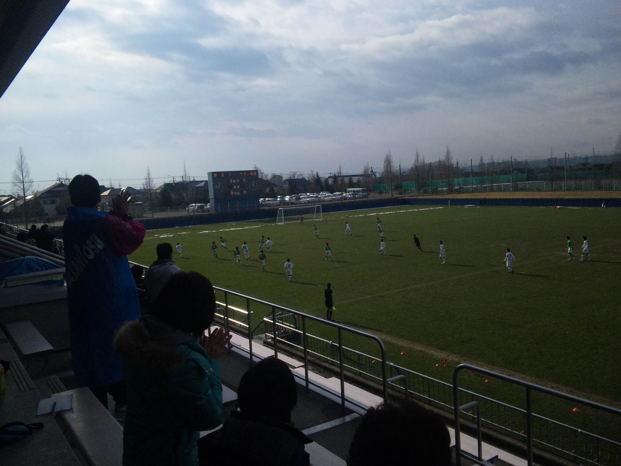 宮城県サッカー場の第一試合。ずっと、ベガルタの裏で試合していたため、『声はすれども姿は見えない』鳥栖のソロサポ(というか、実は新日鉄大分の一人サポだったそうだが)。スゲー、鳥栖の敗退は既に決まっているのに応援来てるよ。とりあえず彼に敬意を表し、彼の斜め後ろで観戦。