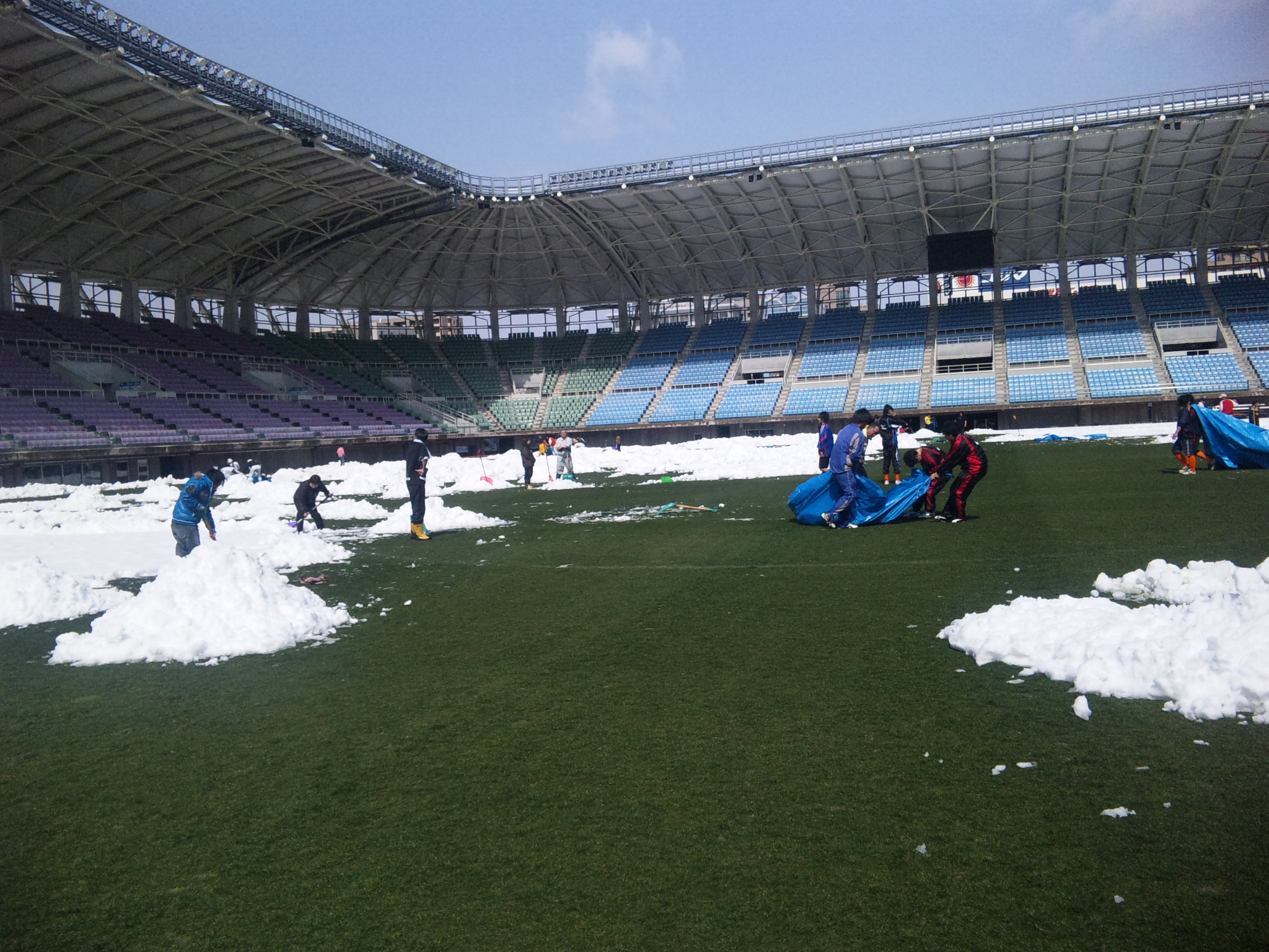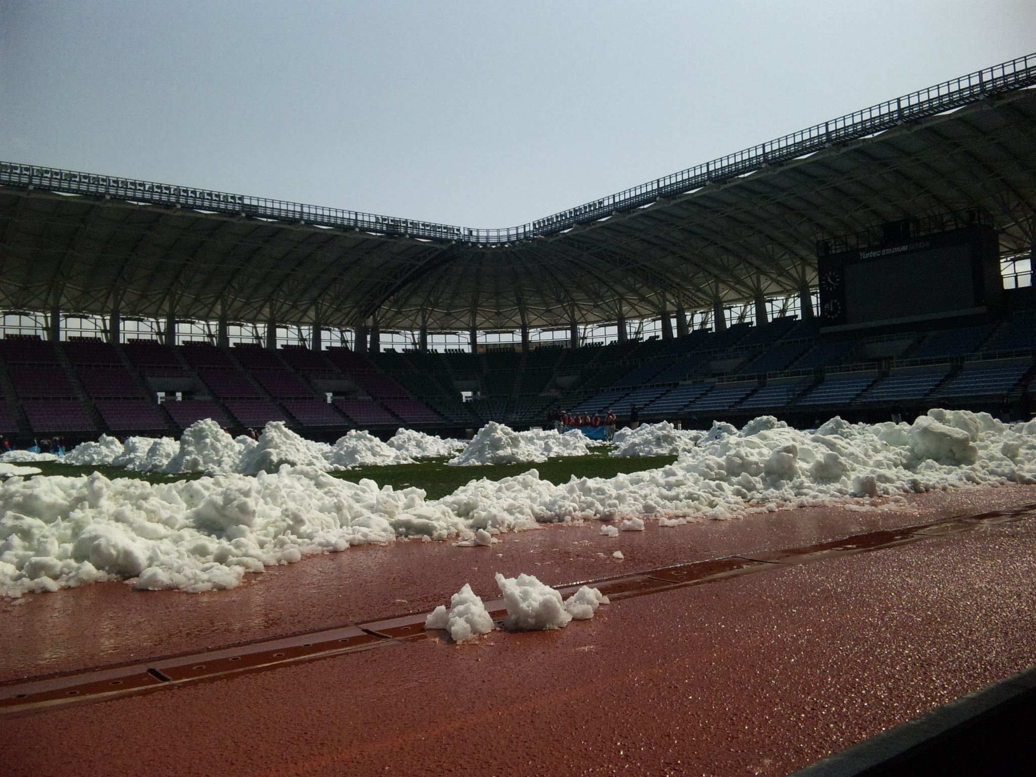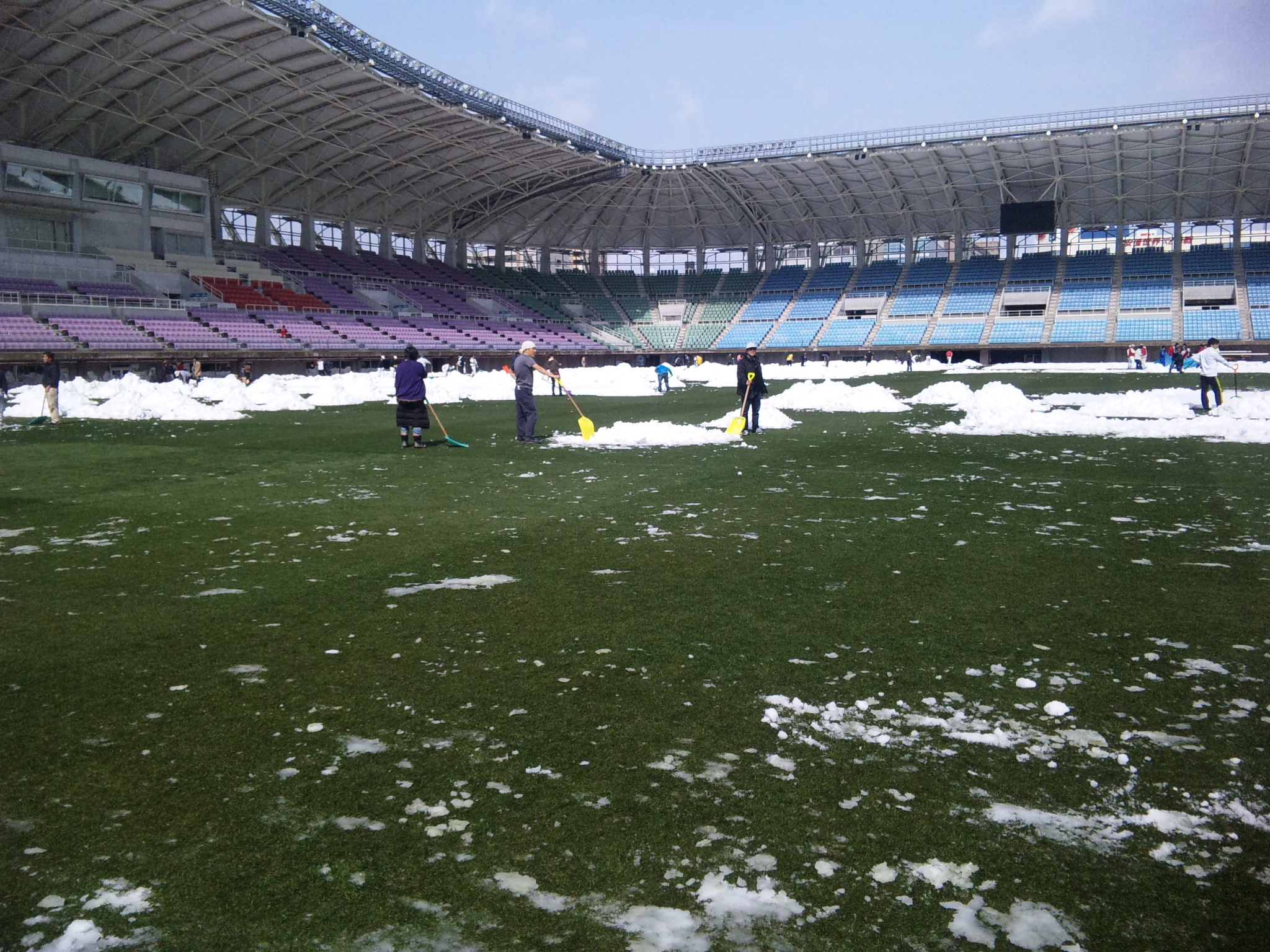 で、あさってホーム開幕戦ということで、仙台スタジアムの雪かきに参加してみた。