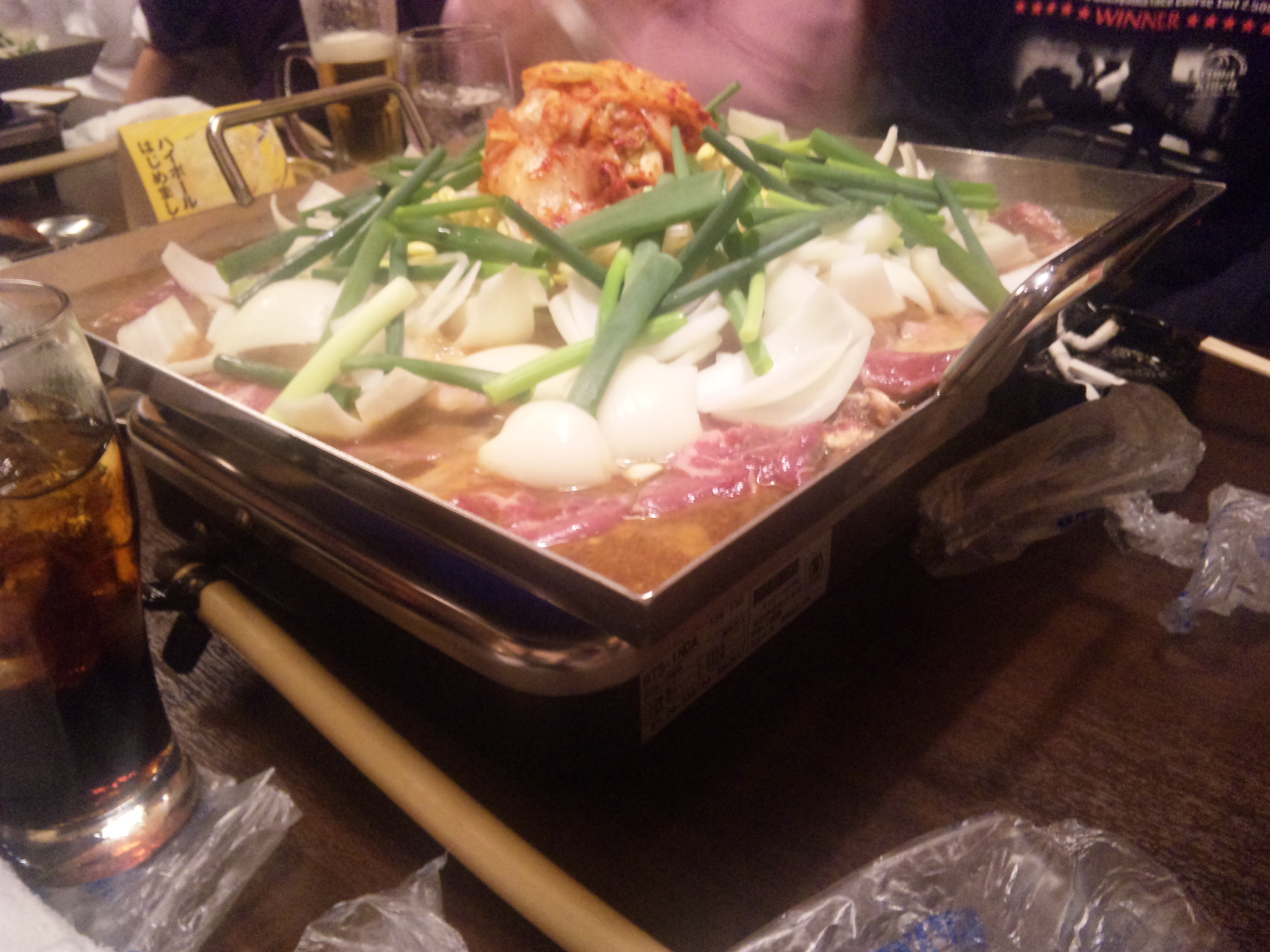 出てきた料理は写真のちりとり鍋、漬物少々のみ。あと飲み放題。