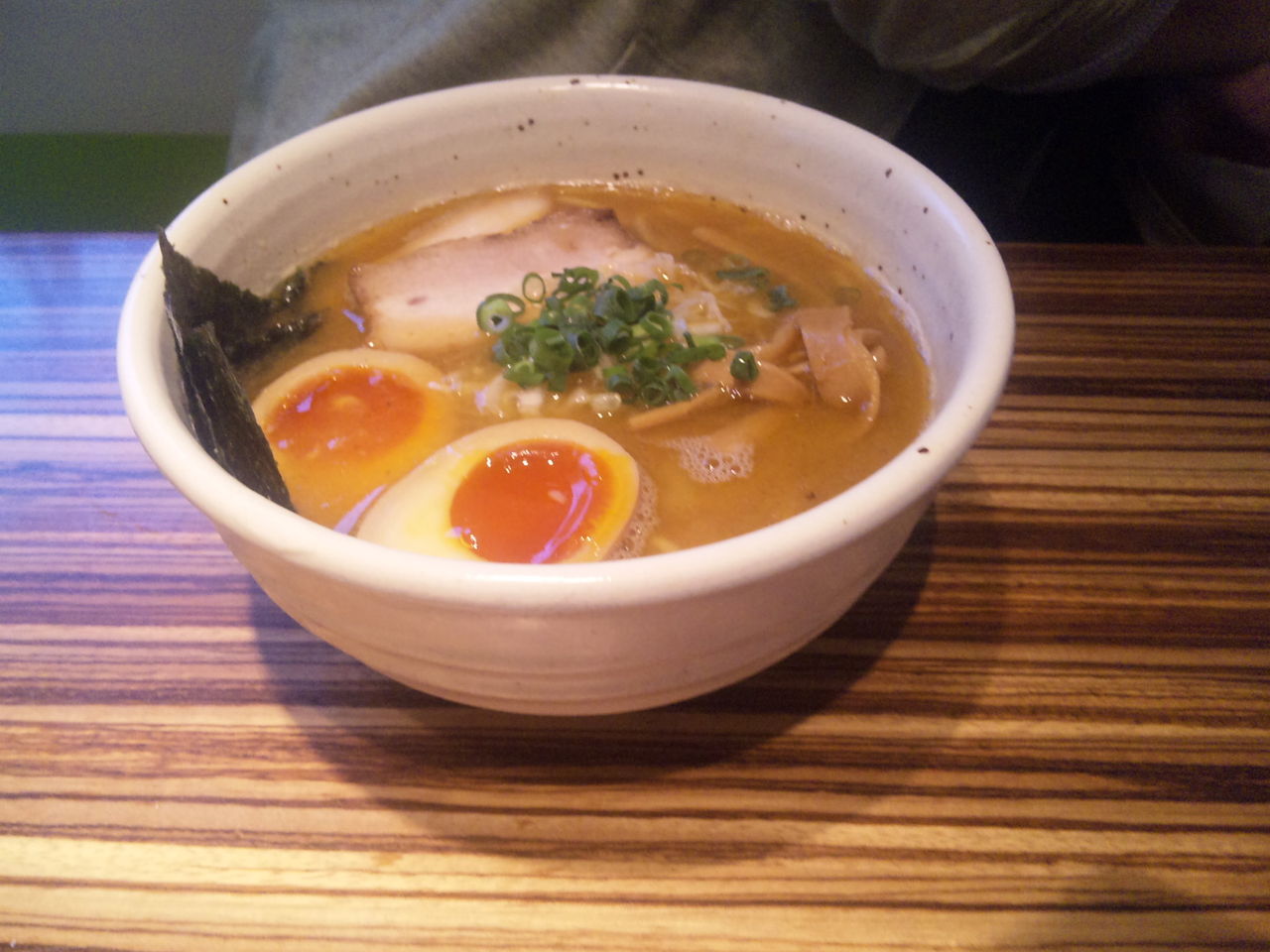 ここは、南光台にある麺屋とがしの系列店だが、とがしと違って、カウンターだけではなく、テーブル席もある。で、この店に入るのに躊躇した理由がもう一つあり、前に麺屋とがしに行ったとき、やたら出てくるのが遅かったから。しかし・・・その心配は杞憂。10分もたたないうちに出てきた。