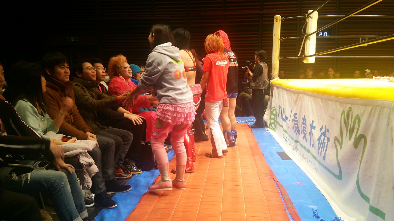 最後は選手全員が場内を回って観客と握手(正直、見てる方はかなり照れくさいwww)、そして「プロレスでハッピー!アイスリボン!」で締め。