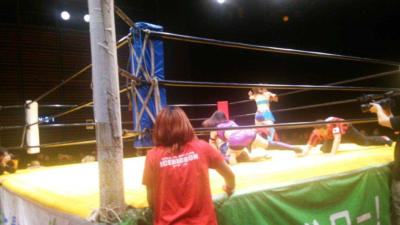 今日は夜にZERO−ONE6年ぶりの仙台大会があるということで、男子とのミックスドマッチ。しかし、最近のミックスドマッチって、普通に男子vs女子とかやらせるのね。