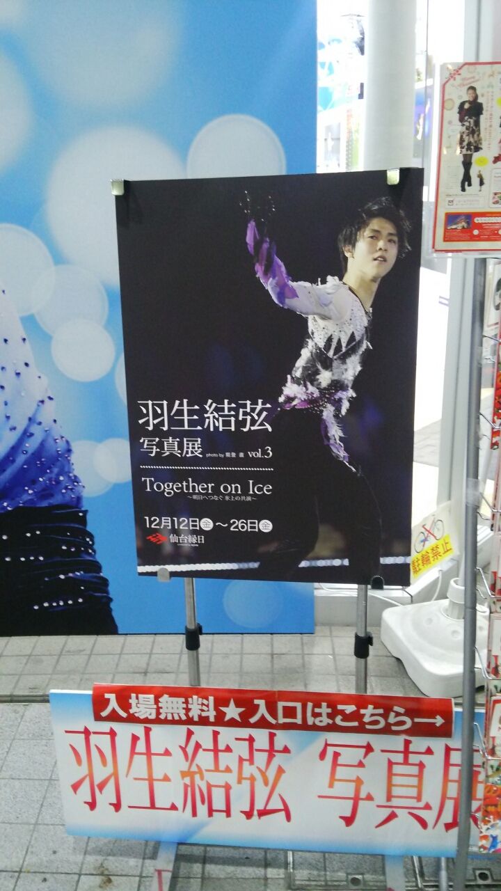 (写真は仙台・中央通りクリスロード商店街、仙台縁日でやっている、羽生結弦写真展。別名・全日本選手権の中継番宣)