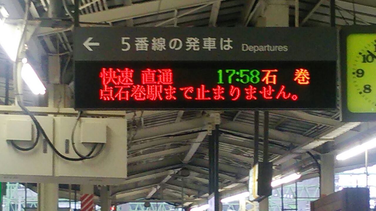 そらそうよ、だって平日17時58分発なんて、一般サラリーマンはそうそう乗れないでしょうよ。実際、仙台発石巻行きの高速バスが満員で積み残しがんがん出てるらしいし。