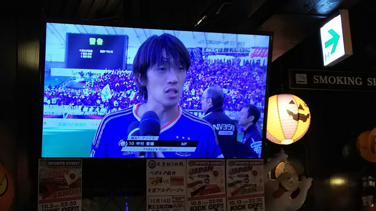 着いて、オーダーしている間に中村俊輔がFKをセット。なかなか蹴らない、イライラ。。。って思ったら。。。