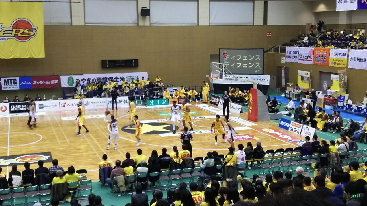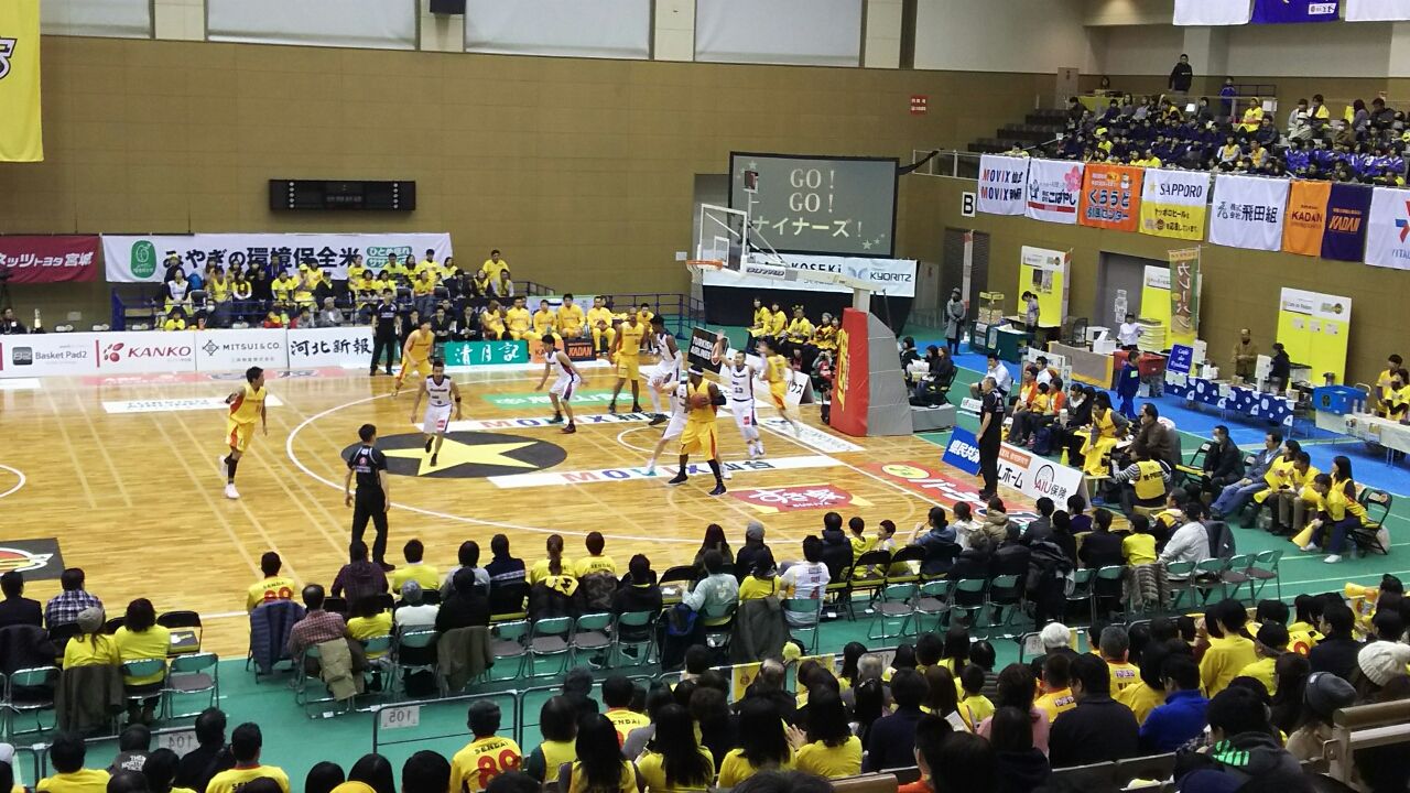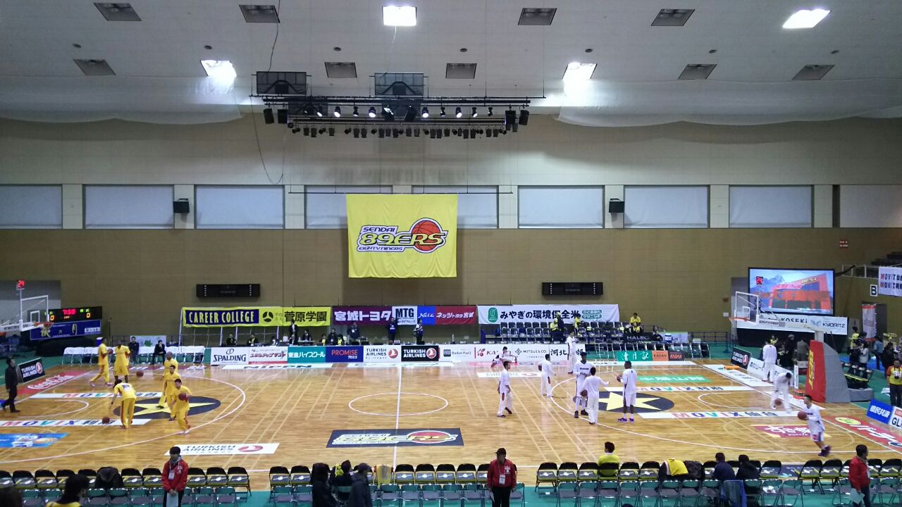 青葉体育館は、こぶりながら選手が近くに感じられる。けど、Bリーグではこのハコ使えないんだよな・・・
