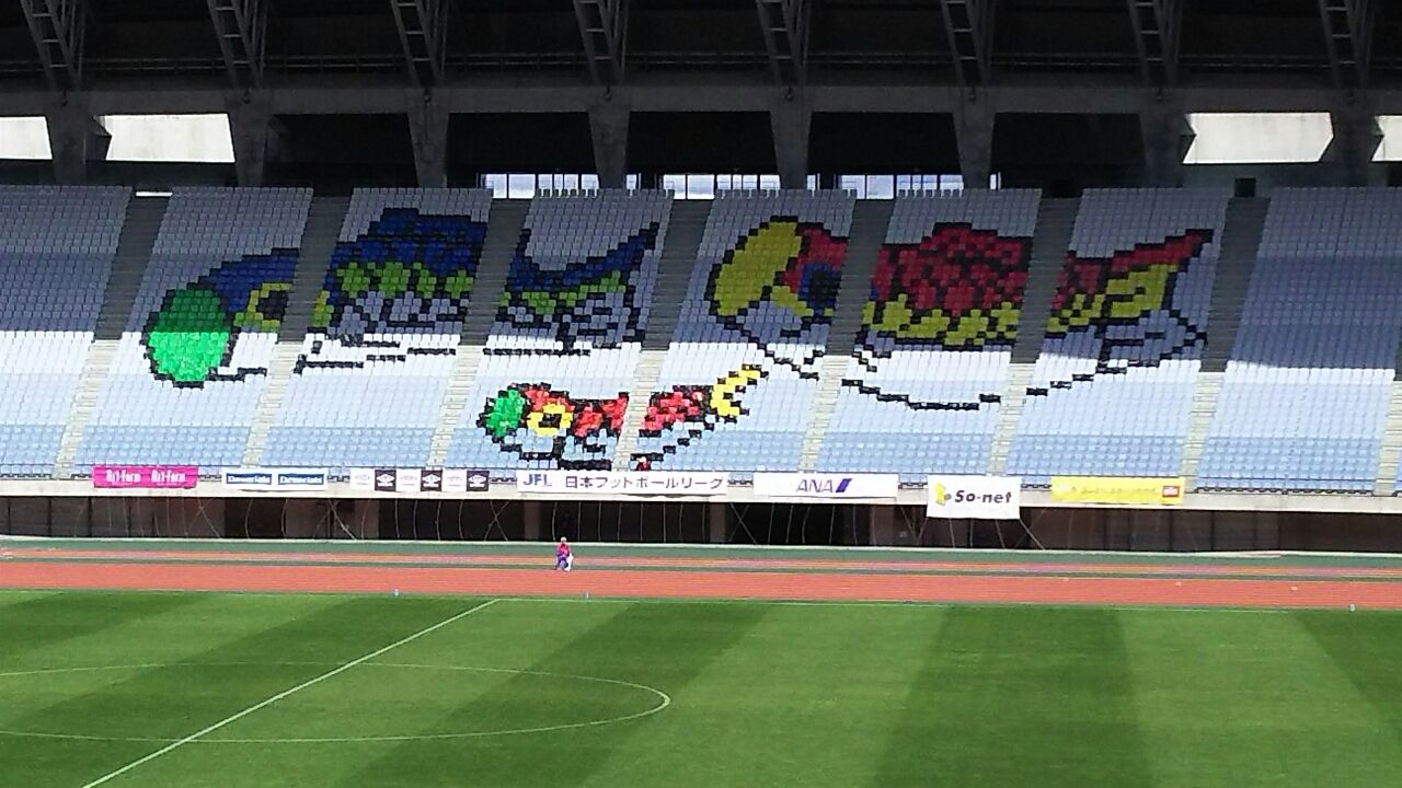 で、13時26分だかに岩切到着→一回帰宅して荷物を置いて、チケット取って、バイクで宮城スタジアムへ。着いたらハーフタイムでクラップスが演技中だったwww