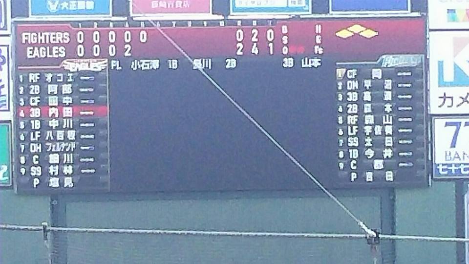 一方のイーグルス打線。この日は夜に育成試合があり、さらに枡田慎太郎が緊急一軍招集されたため、控え野手が石原・伊志嶺・島井のみという・・・