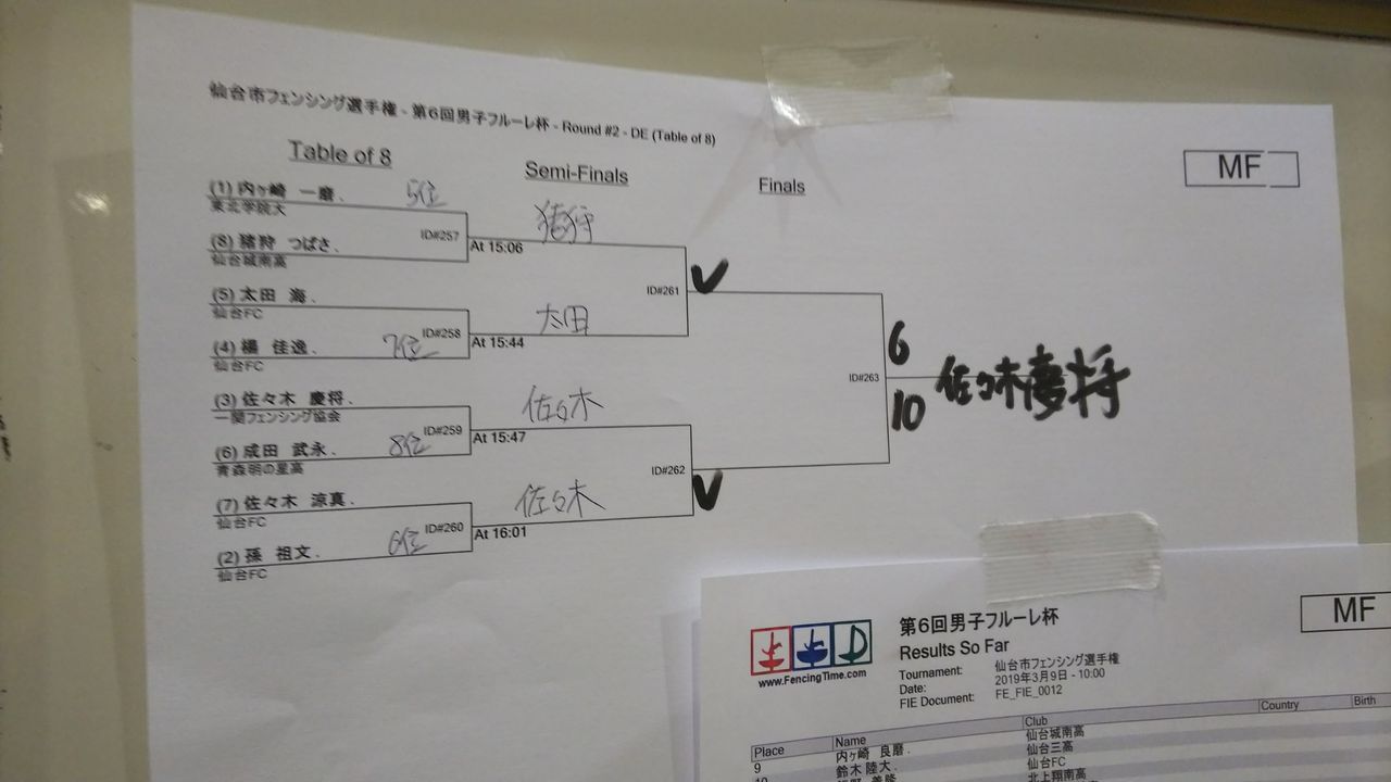 仙台市フェンシング選手権(男子フルーレ)が、3月9日、仙台市秋保体育館で開催された。