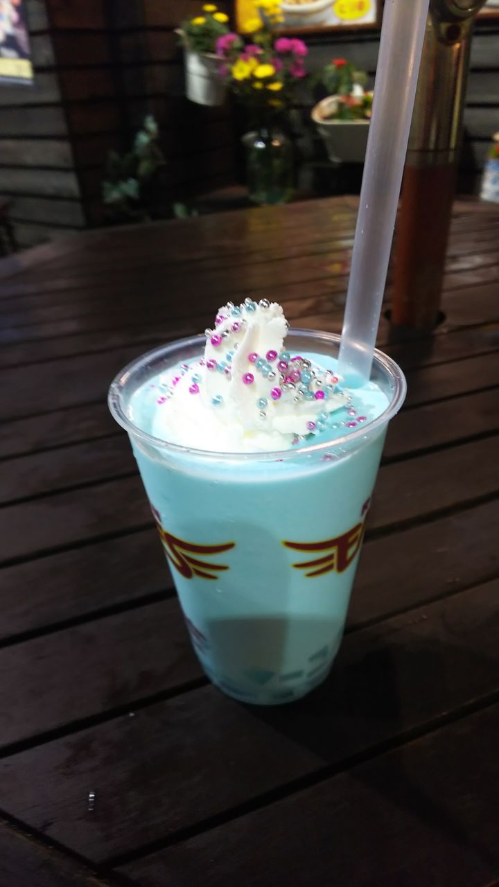 7回表で席を立ち、森キチでTOHOKU BLUEシェークを飲んでいたらさらに雨が強くなり、失点。