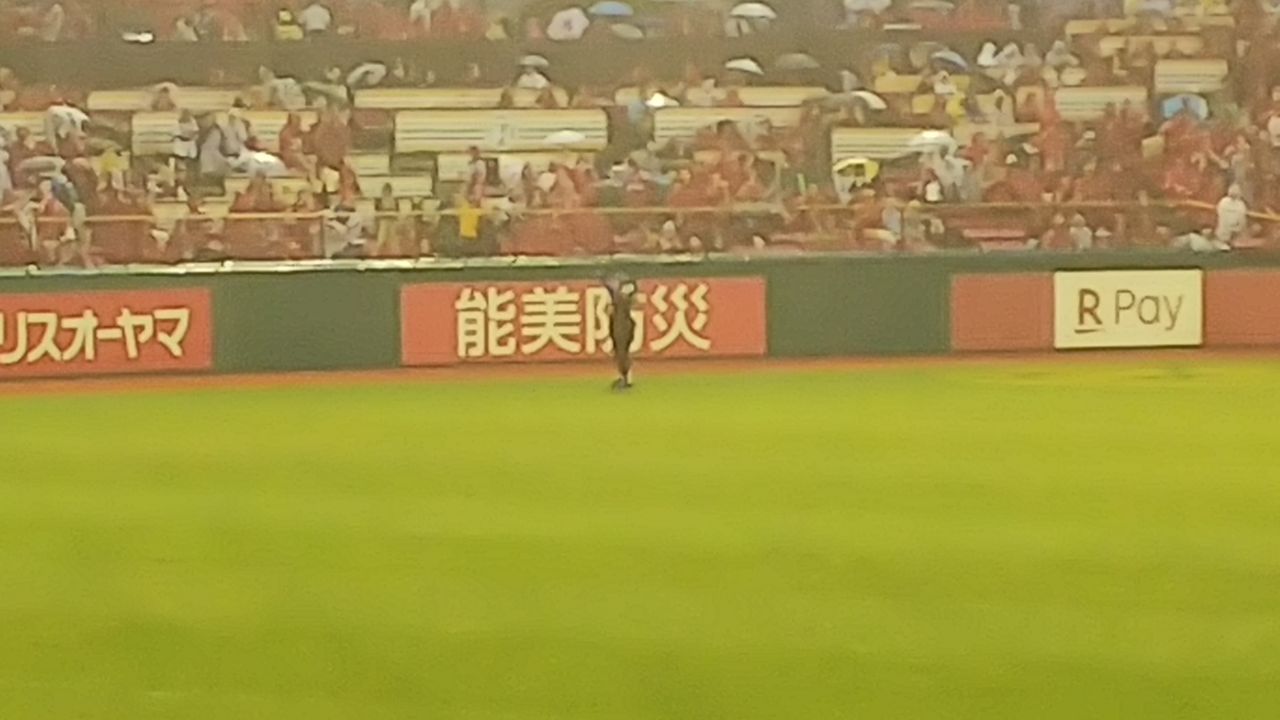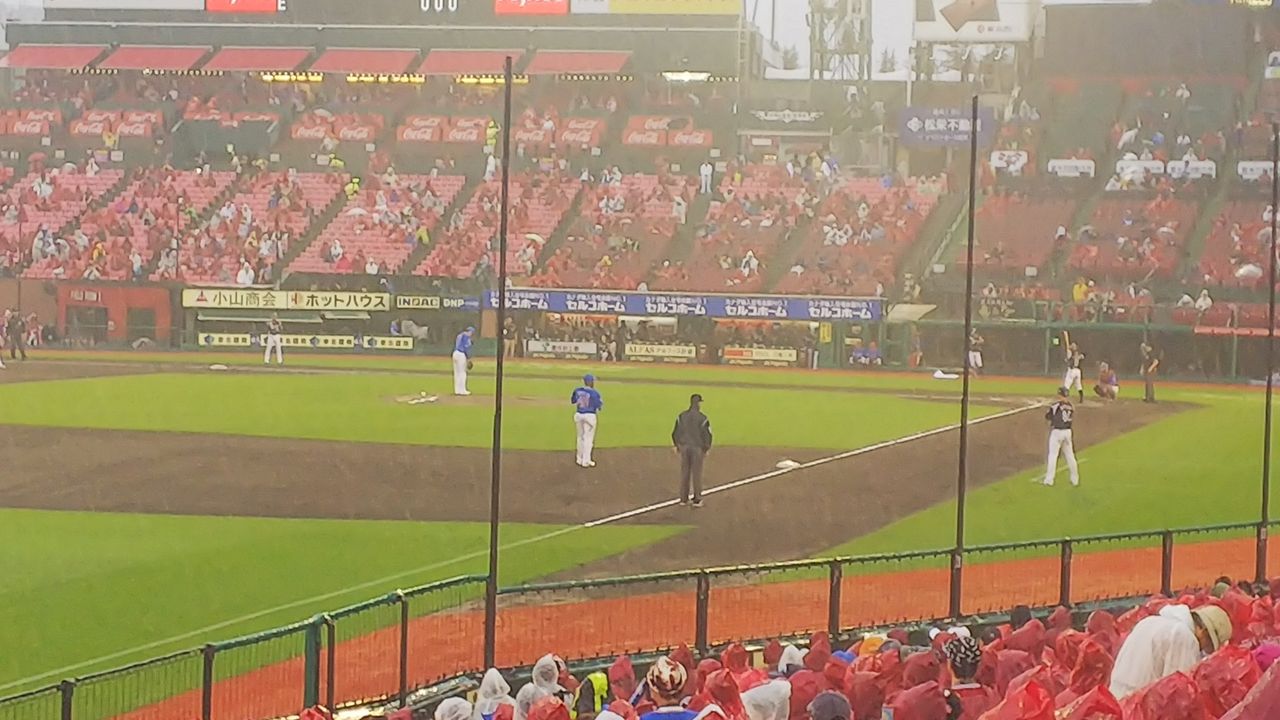 試合開始時点でも降っていたとさ。交流戦明けの一発目。