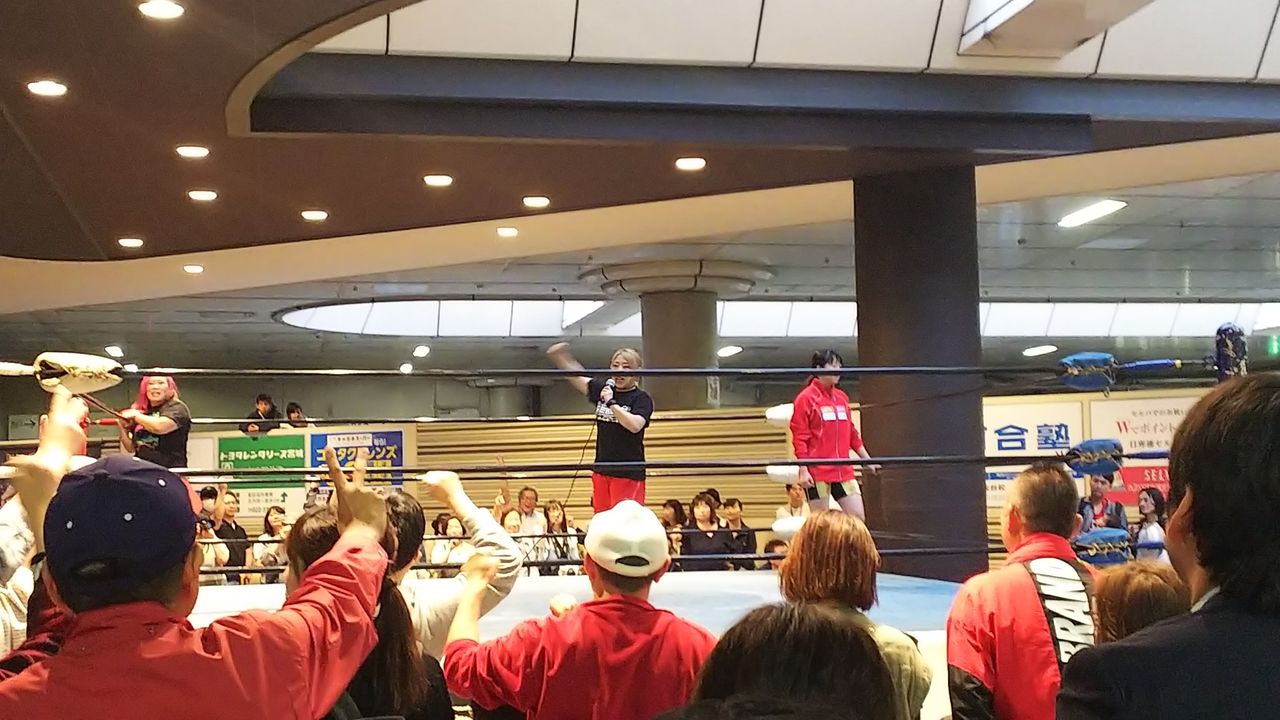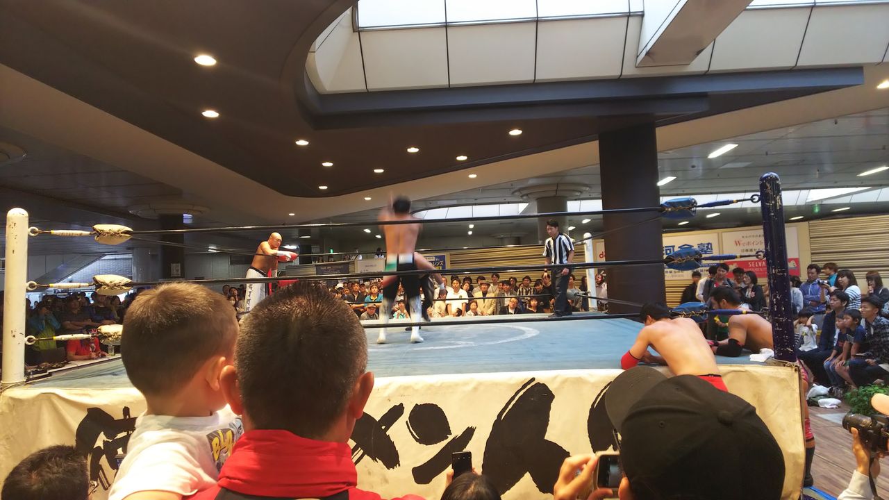 16時から小学生対象のプロレス教室で、のはしたろうが司会でロープワークとかやらせてたな。試合はザ・グレート・サスケと、DASH・チサコの解説、リングアナ・ムーチャス入江の実況つき。