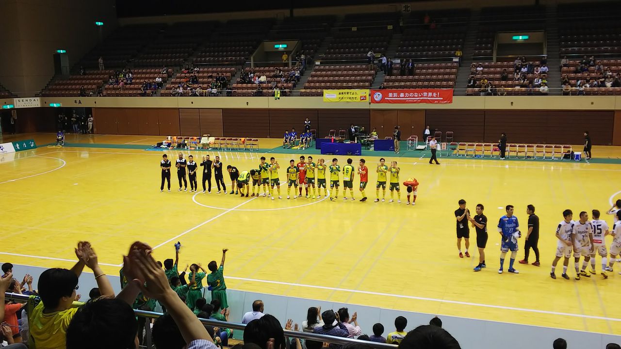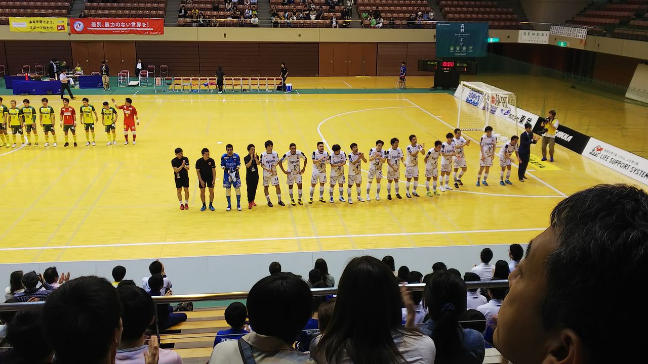 いや、森村孝志選手の200試合出場記念で、名前に「森」「村」「孝」「志」が入る人は無料招待、というわけで参戦www◎第15回Fリーグディビジョン1第8節 ヴォスクオーレ仙台vsフウガドールすみだ 2019年7月6日(土)14時 カメイアリーナ仙台(仙台市体育館) 主審:常國広平 1088人