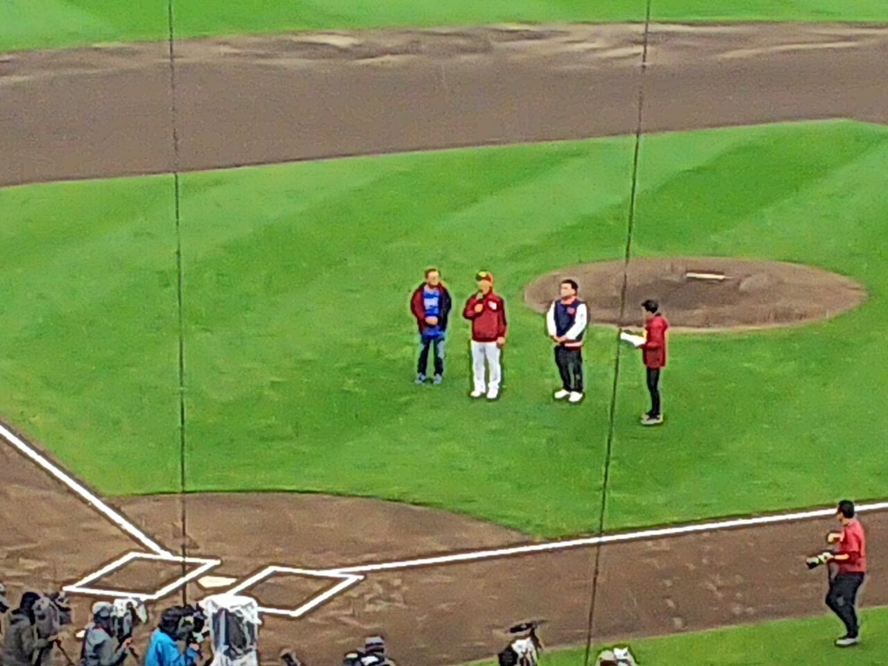 ・今江年晶、引退セレモニー。最後は今江の息子が投手、捕手は嶋、球審伊達ちゃんで、今江vs今江の対決は。。。センターへの二塁打だった。