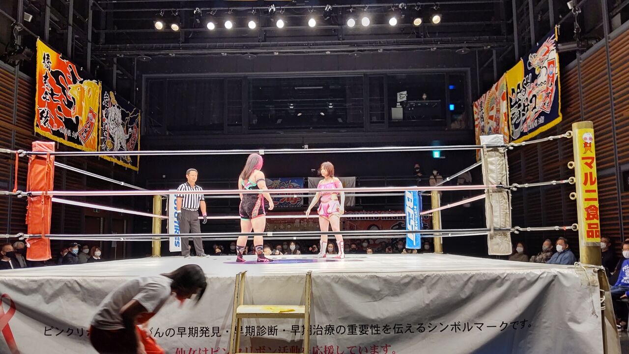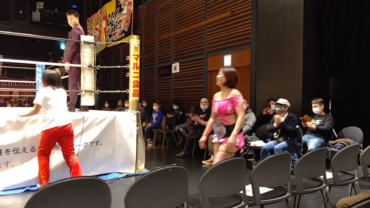 となると、金子出場予定だった第一試合の相手が空いて、。。。橋本千紘が第一試合・第二試合を連投することに!◎仙台女子プロレス Acceleration 2021年2月23日(祝)14時 宮城野区文化センター 観衆未発表*目測で100人