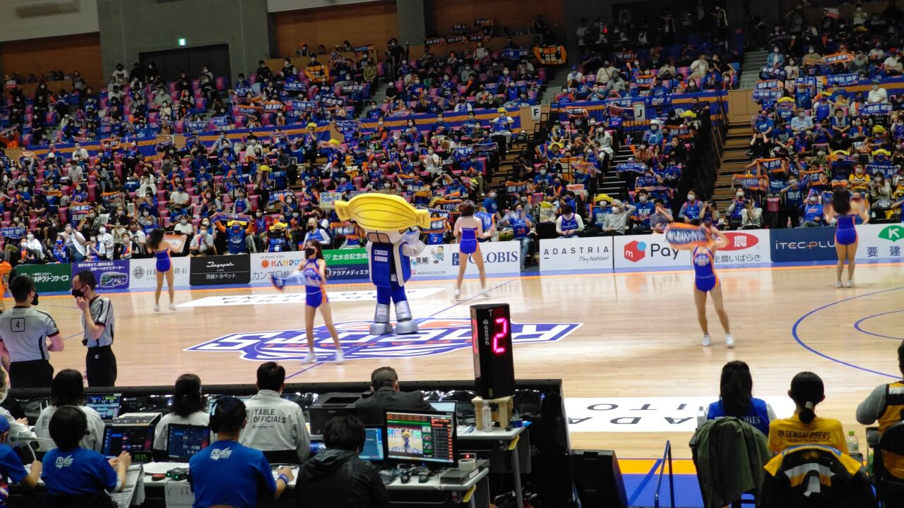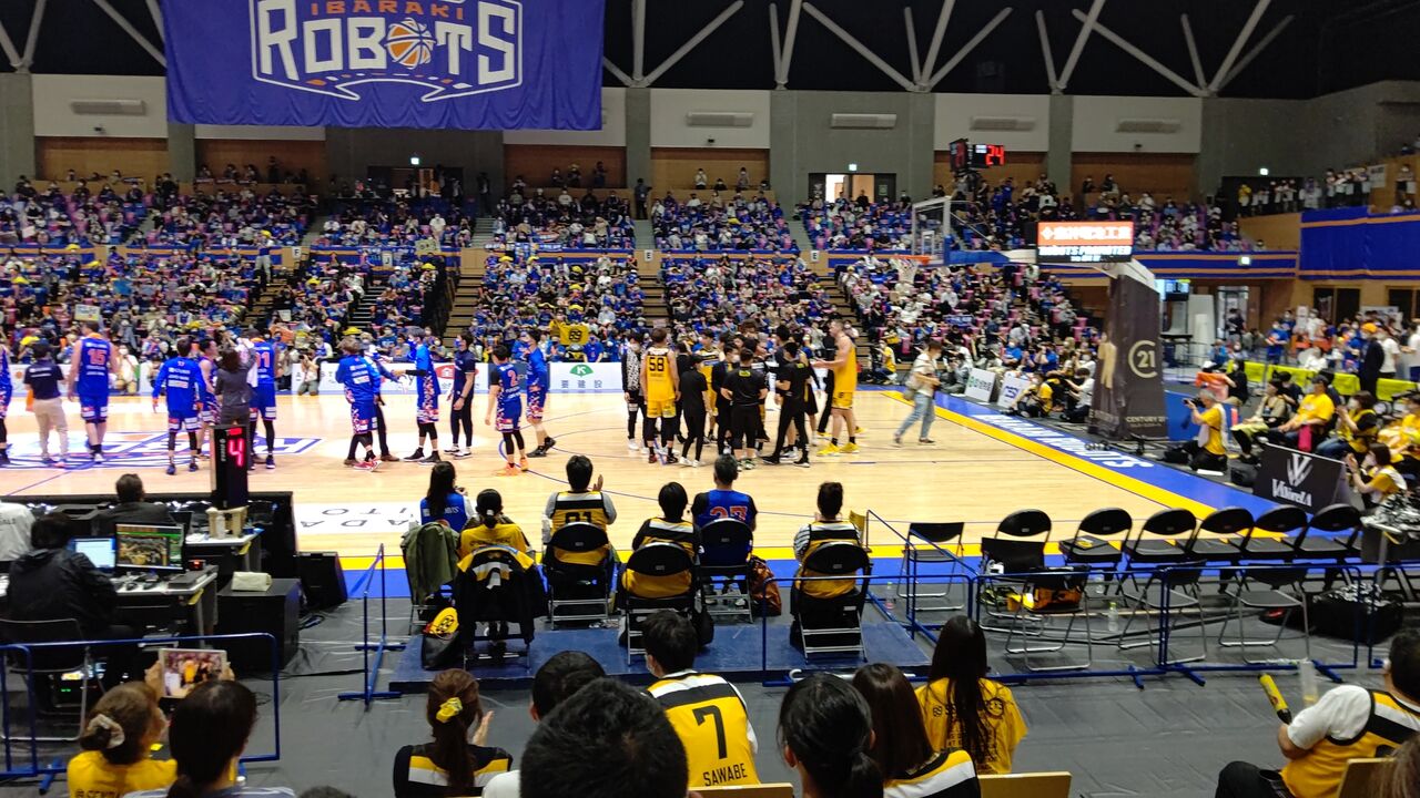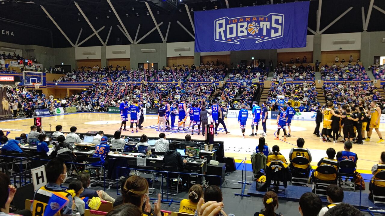で、肝心の水戸のGAME2。・ケーズデンキプレゼンツ B2 PLAYOFFS SEMIFINAL GAME2 茨城ロボッツ(青)vs仙台89ERS(黄)(茨城2勝) 2021年5月16日(日)14時 アダストリアみとアリーナ 審判:漆間大吾、東祐二、眞榮喜工 2178人