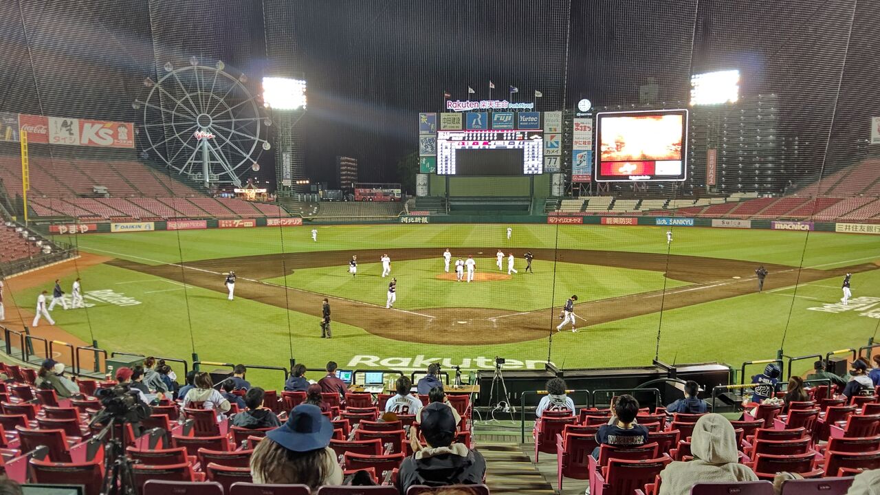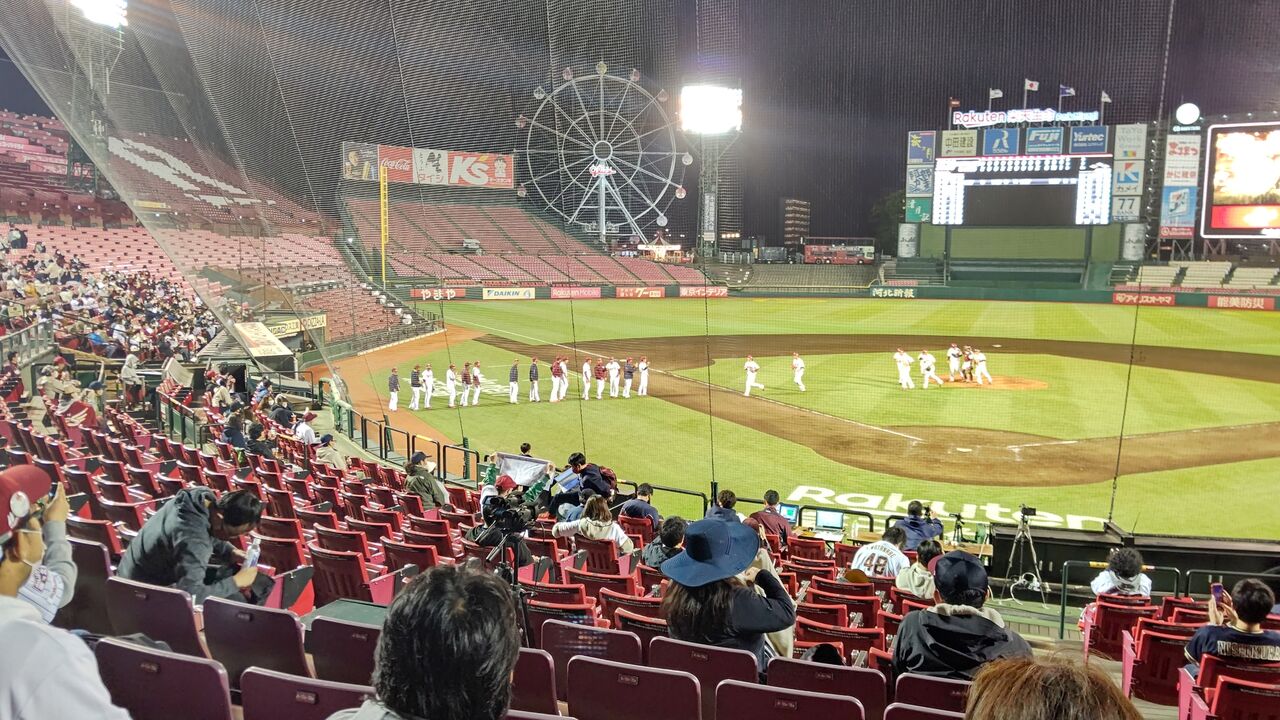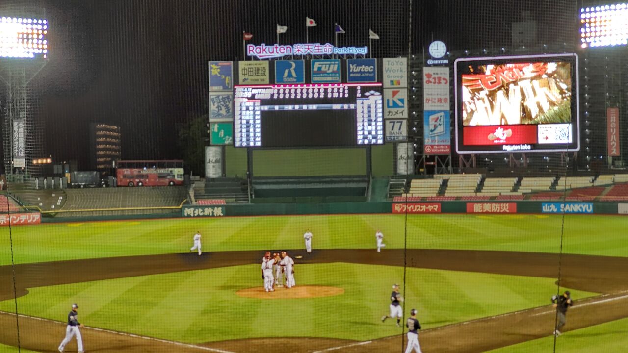 宮城球場を16時過ぎに出て、途中台原のサイゼリア寄って一服して、試合開始直前くらいかな、いやスタメン発表には間に合ったくらいに到着。
