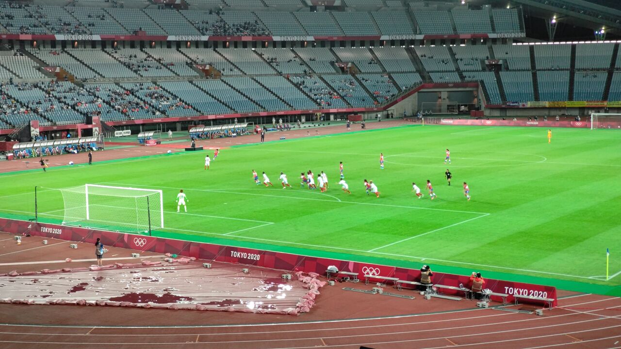 ◎Tokyo2020 サッカー女子E組 チリ女子代表vs日本女子代表(なでしこジャパン) 2021年7月27日(火)20時 キューアンドエースタジアムみやぎ(宮城スタジアム) 雨 主審:BORJAS Melissa (HON) 2000人(目測)