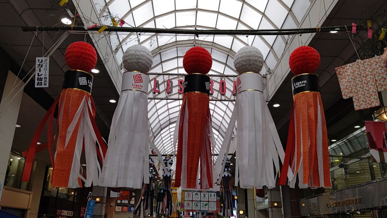 リガーレ仙台。あと、写真撮り損ねたけど、東北楽天ゴールデンイーグルスも七夕飾りを出していた。