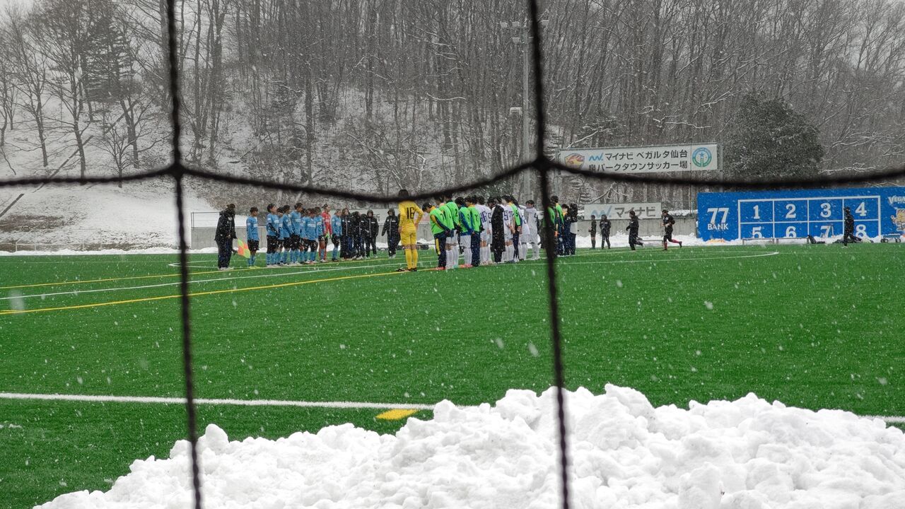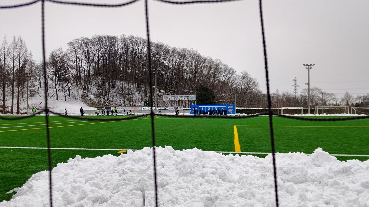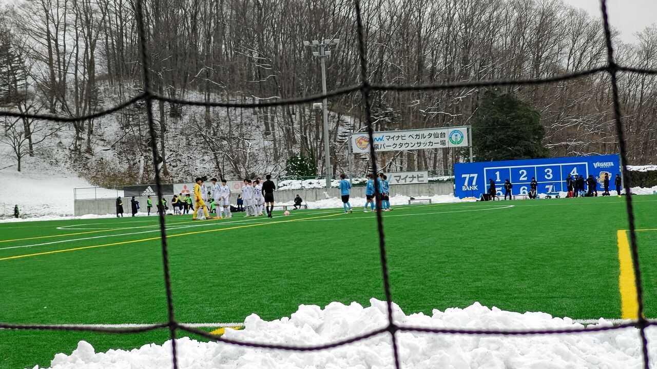 ◎練習試合 マイナビ仙台レディース(青)vs多賀城高(白。男子) 2021年12月19日(日)11時 マイナビベガルタ仙台泉パークタウンサッカー場 曇時々雪 主審:男性 副審:出ていない選手が交代で 30名(招待人数)