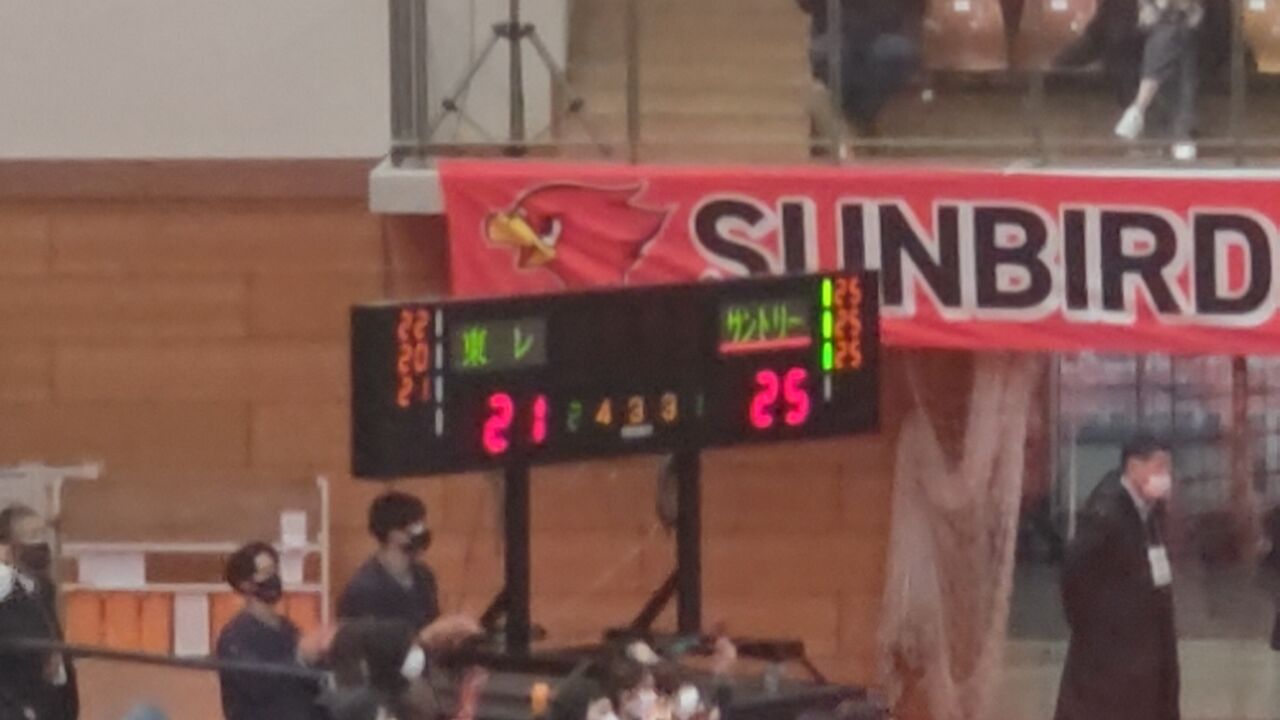この結果、サントリー18勝5敗(48ポイント)、東レ16勝8敗(49ポイント)。サントリーがポイント1差まで迫った。お土産?は、サントリーの缶ビール一本w