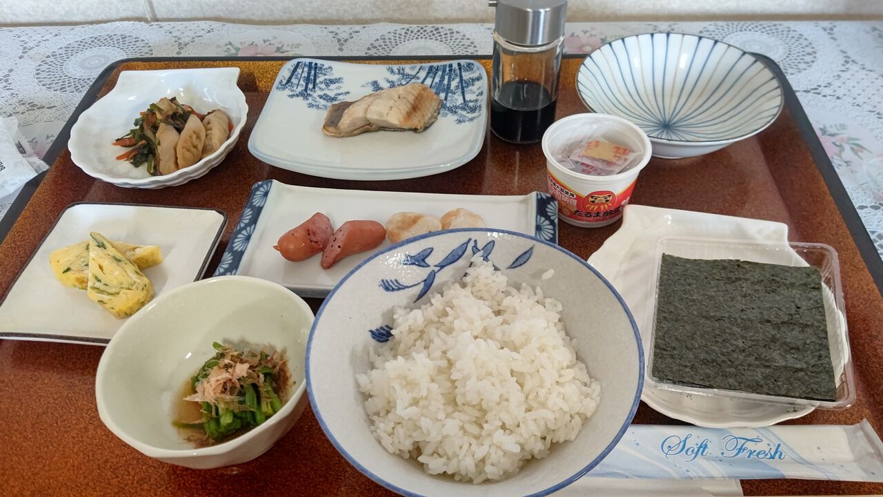 部屋の写真撮ってなかったので、朝食の写真を。結果、先週は(水戸対策で)水曜・金曜、そして日曜と納豆だった。