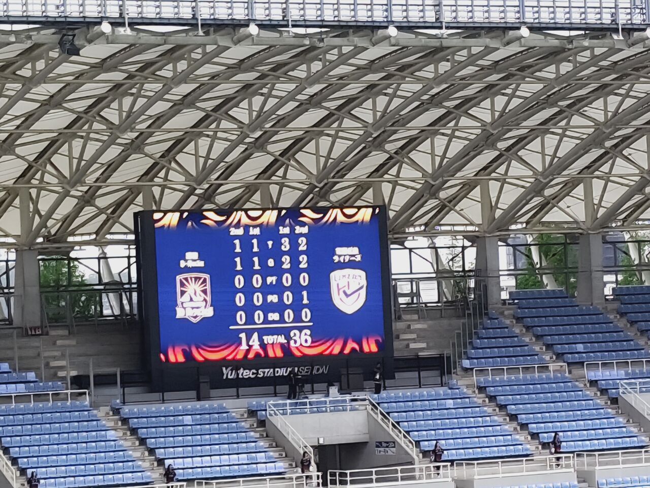 ラグビー・リーグワンで、浦安Dロックスの仙台開催の試合が流れたのはこの前書いたが、そのお詫び?として、入替戦(H&A)のホームゲームを、ここ仙台開催に持ってきたwwwいや、駒澤は屋根ないから、今日のような雨模様なら、屋根のある仙台スタジアムはええやん、と。