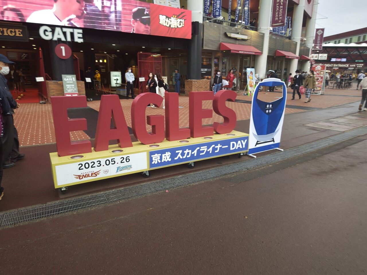 17時10分に着いて、45分待ちというが、実際には18時前には見ることができた。◎京成スカイライナーDAY パーソルプロ野球パシフィックリーグ公式戦 東北楽天ゴールデンイーグルスvs北海道日本ハムファイターズ 10回戦(東北6勝4敗) 2023年5月26日(金)18時 県営宮城球場 曇時々小雨 球審:長井 16444人 3時間9分
