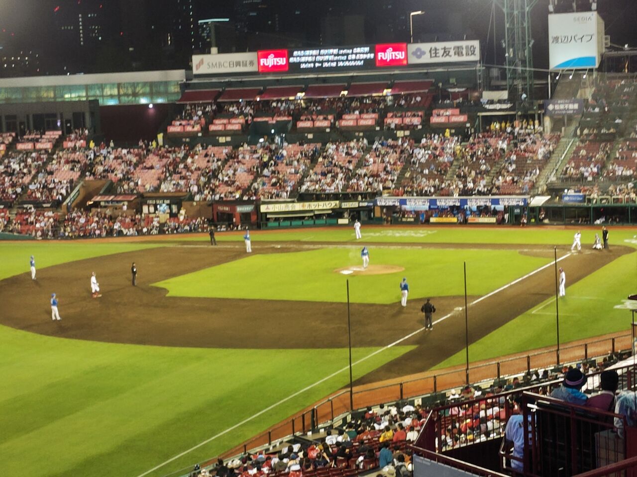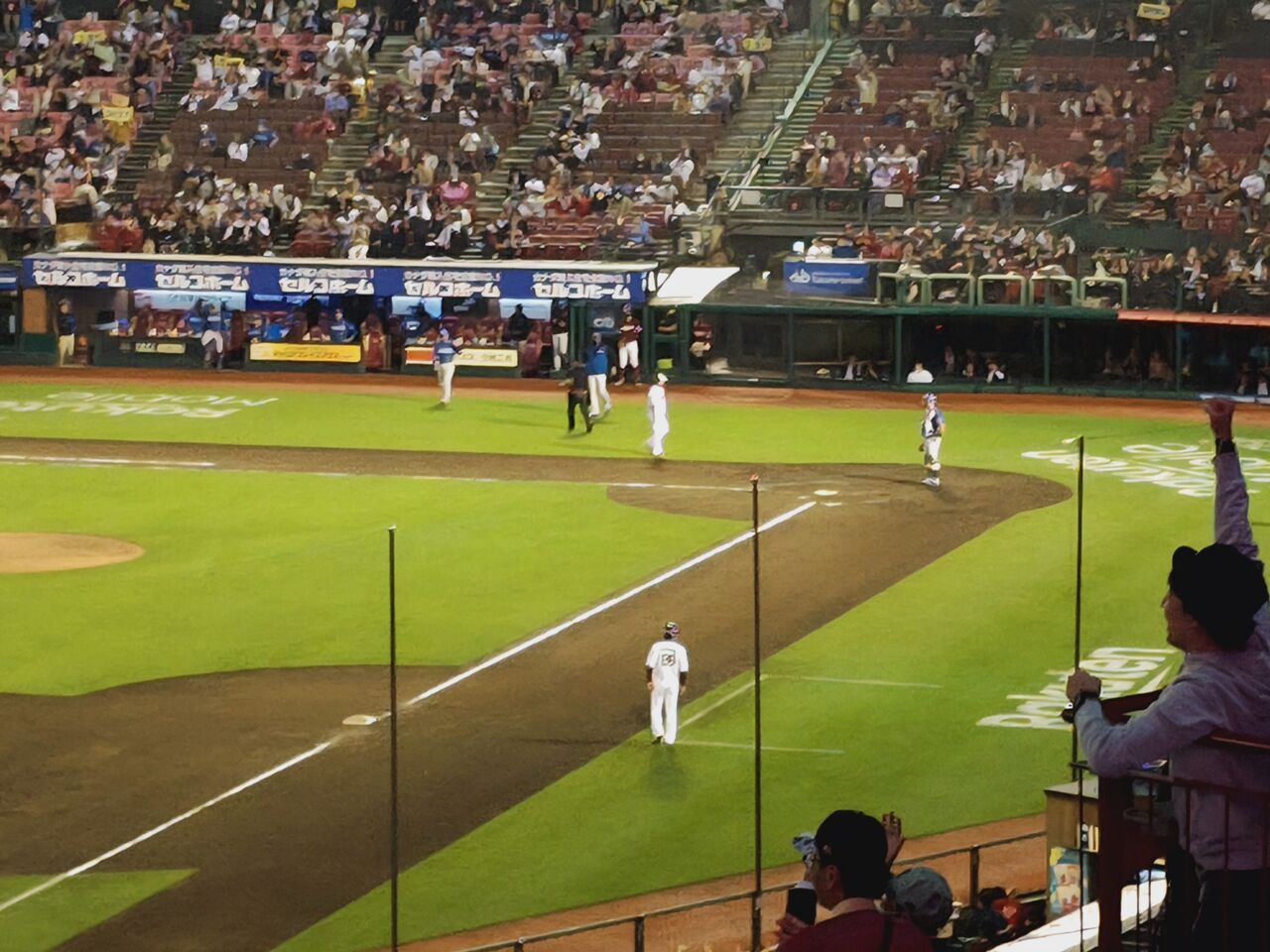そこから、右翼席から入って、移動中に3点を先制されるとかもうね。