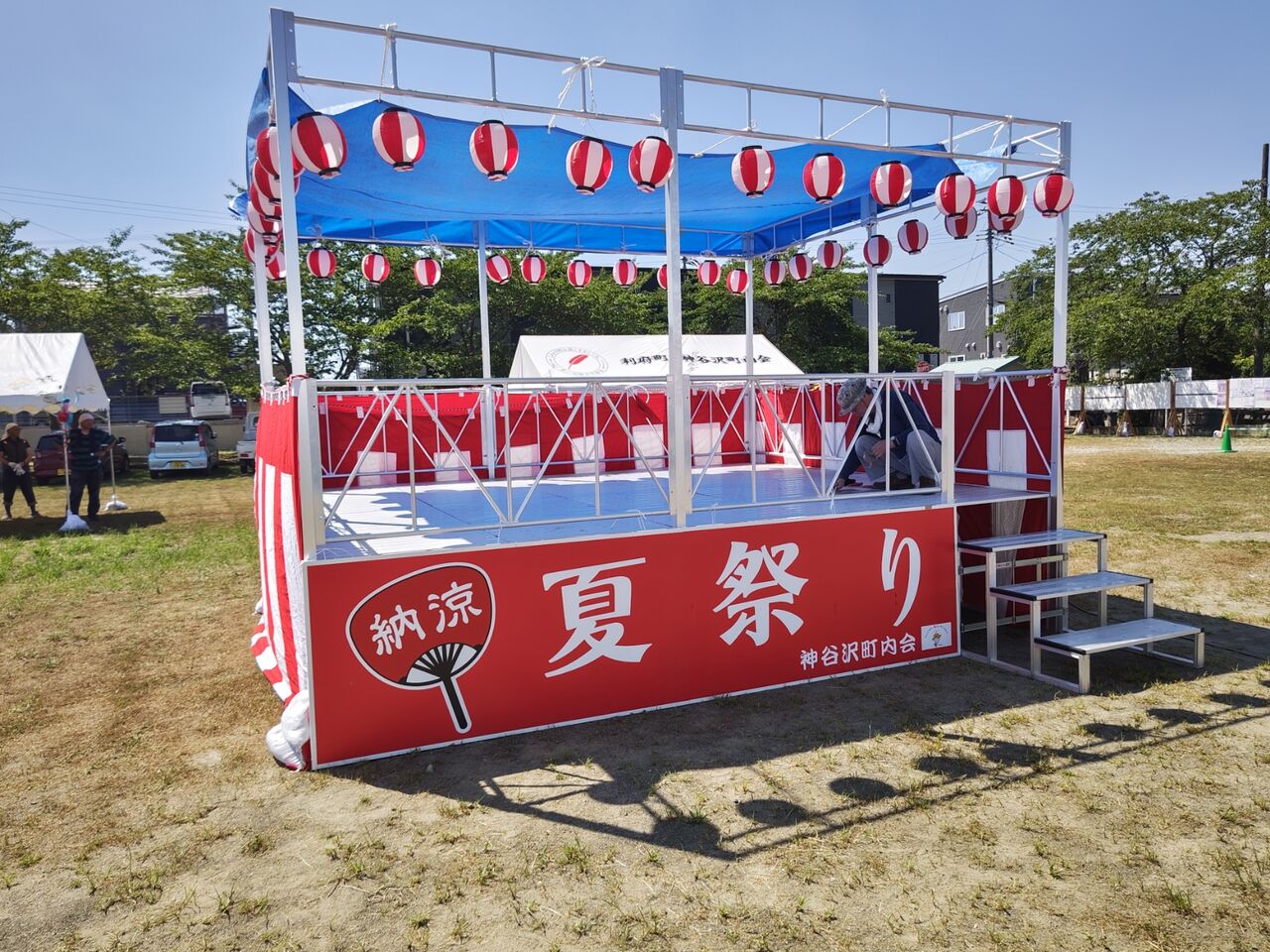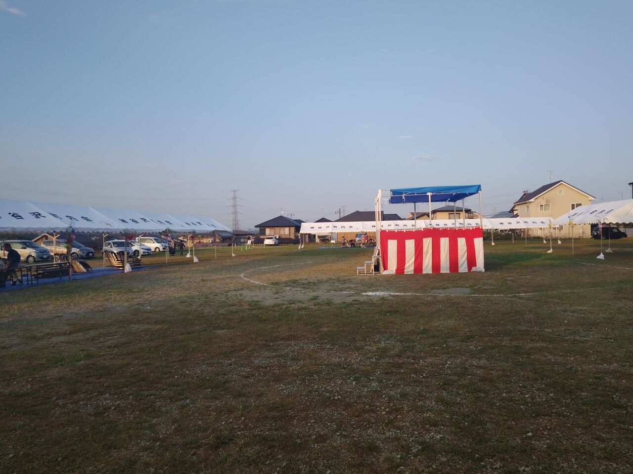 お祭り済んで日が暮れて(18時前には終了w)しかし、明日はまた朝8時半に、テントの撤去がある。。。。