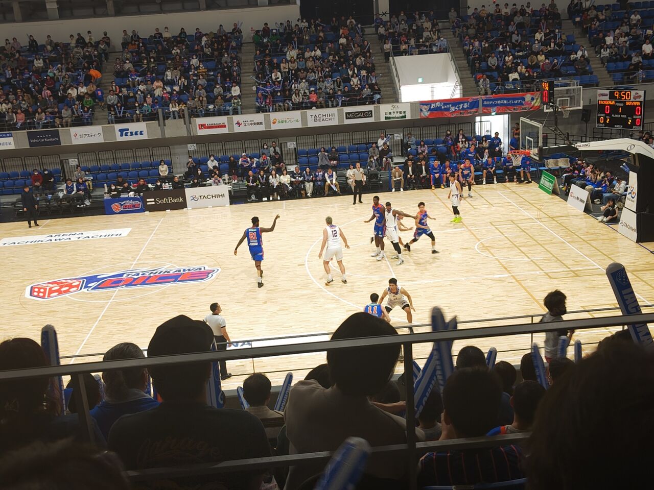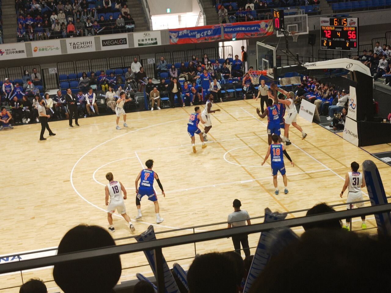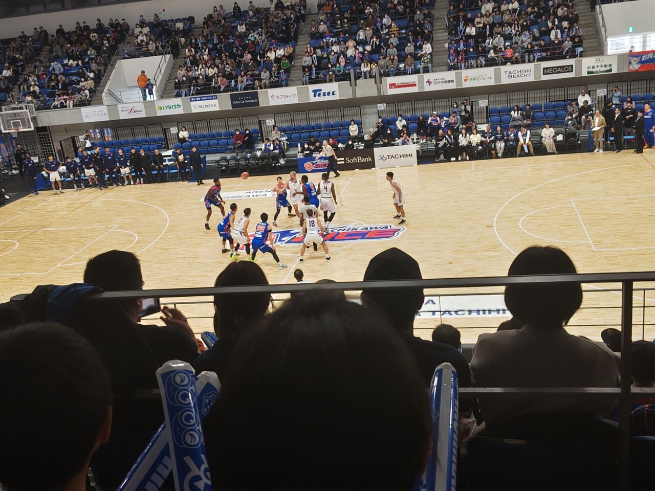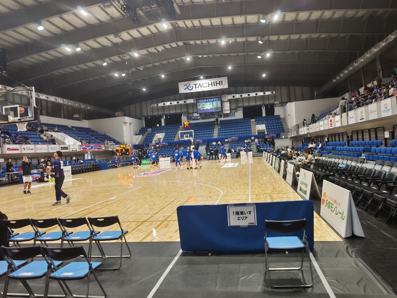 収容人数が3000人。しかし、2F席が四方にあり、しかも(位置が)高いので、見やすいことこの上ない。しかも、立川ダイスは、全試合をこのアリーナ立川立飛で行う。