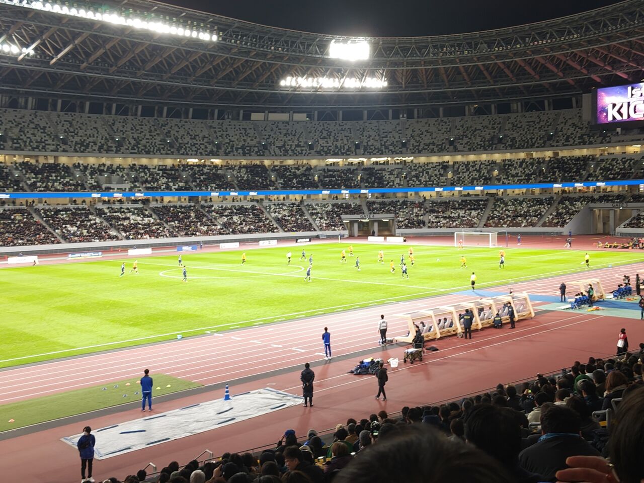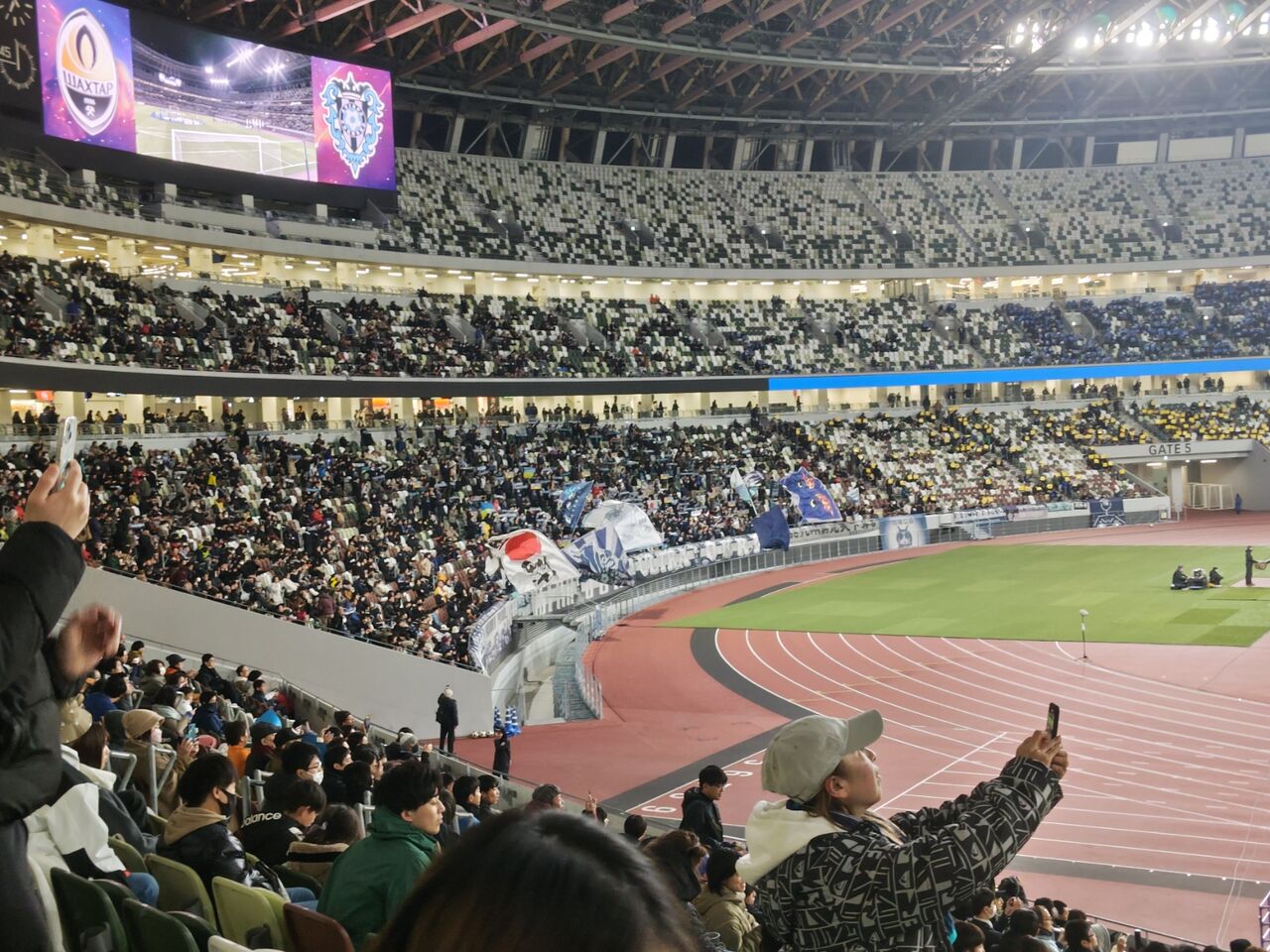 とりあえづ、先に試合結果を書くと、○チャリティマッチ FCシャフタール・ドネツク(橙)vsアビスパ福岡(紺) 2023年12月18日(月)19時18分 国立競技場 18114人