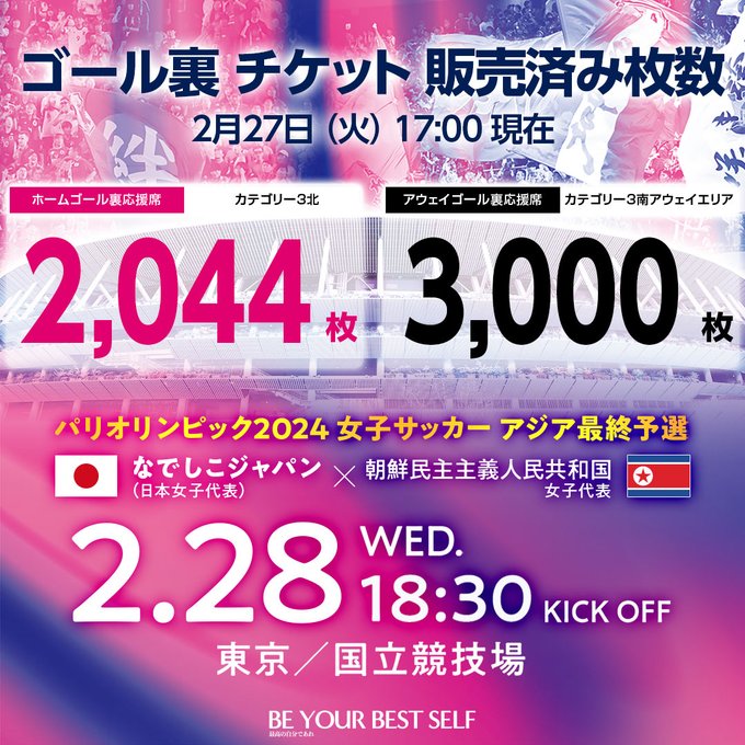 2/27(火)17時時点で、カテゴリー3北(日本応援)2044枚